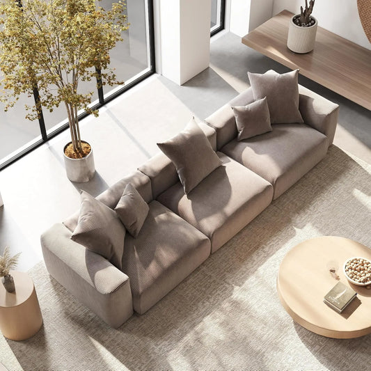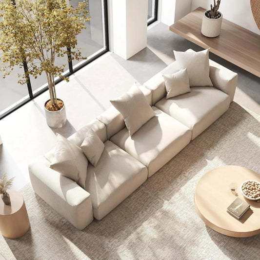 Exclusive Modern Modular Couches3-Piece Corduroy Beige Oversized Silhouette Couch Sectionals 3-seatersExplore Sdorens' Exclusive Modern Modular Couches: beige corduroy couch with removable covers & durable fabric. Free shipping!