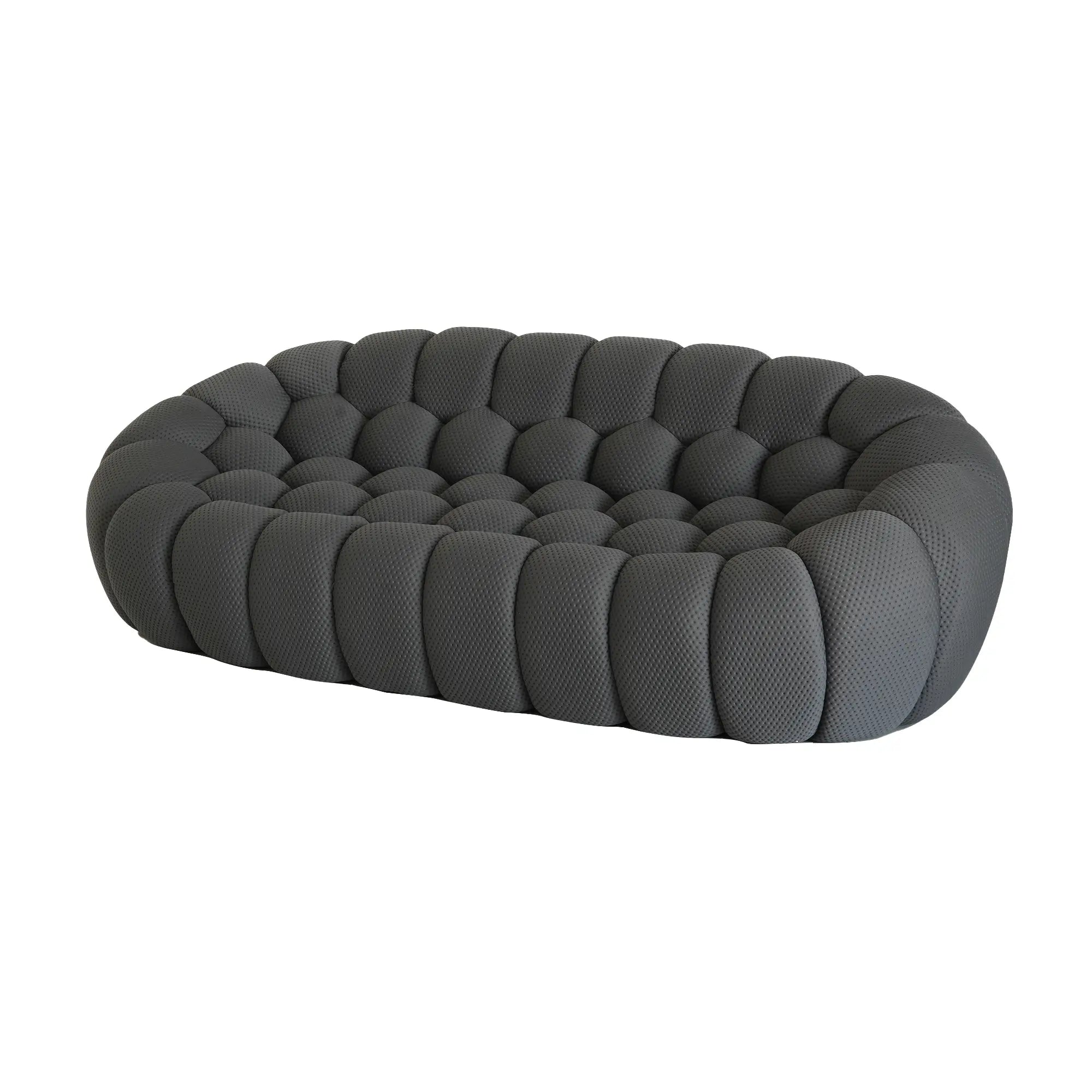 To perfectly complement its fluid shape, the sofa is wrapped in a high-performance 3D-knitted fabric, offering exceptional durability and breathability.