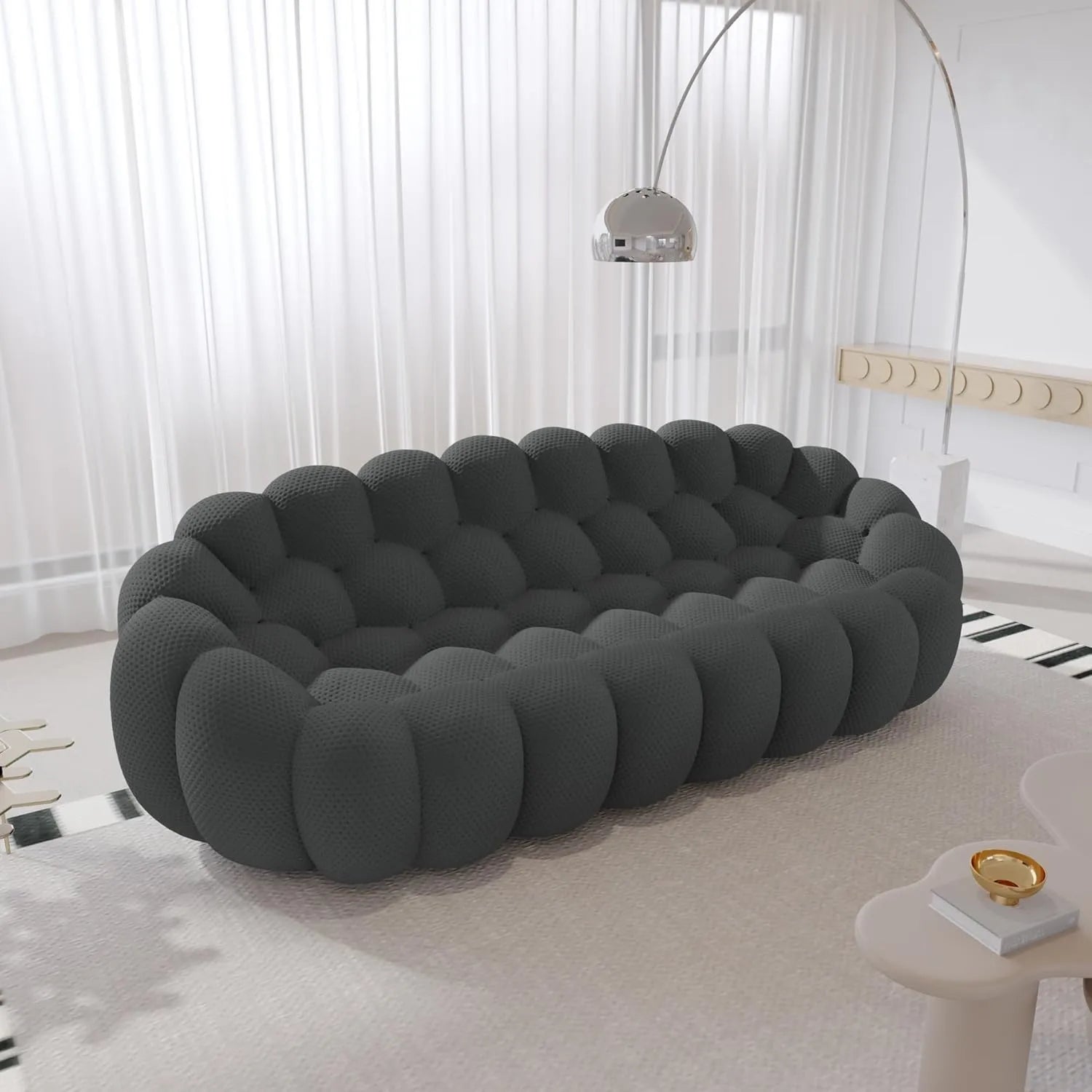 The couch is upholstered in a supple, breathable 3D-knitted fabric. This advanced material feels soft to the touch and promotes airflow, keeping you cool and comfortable even after hours of relaxation.