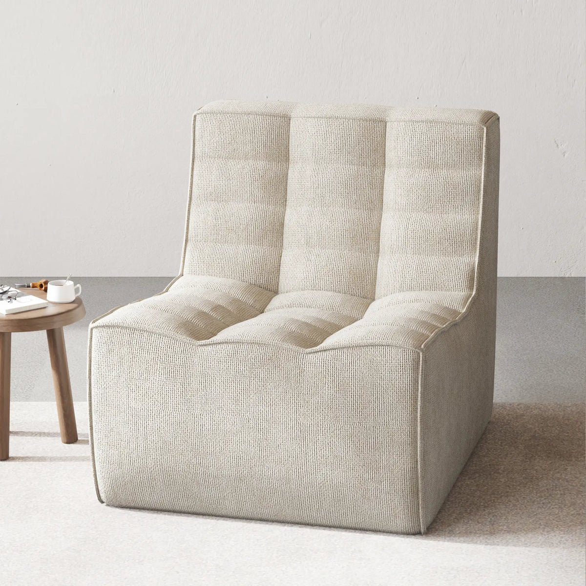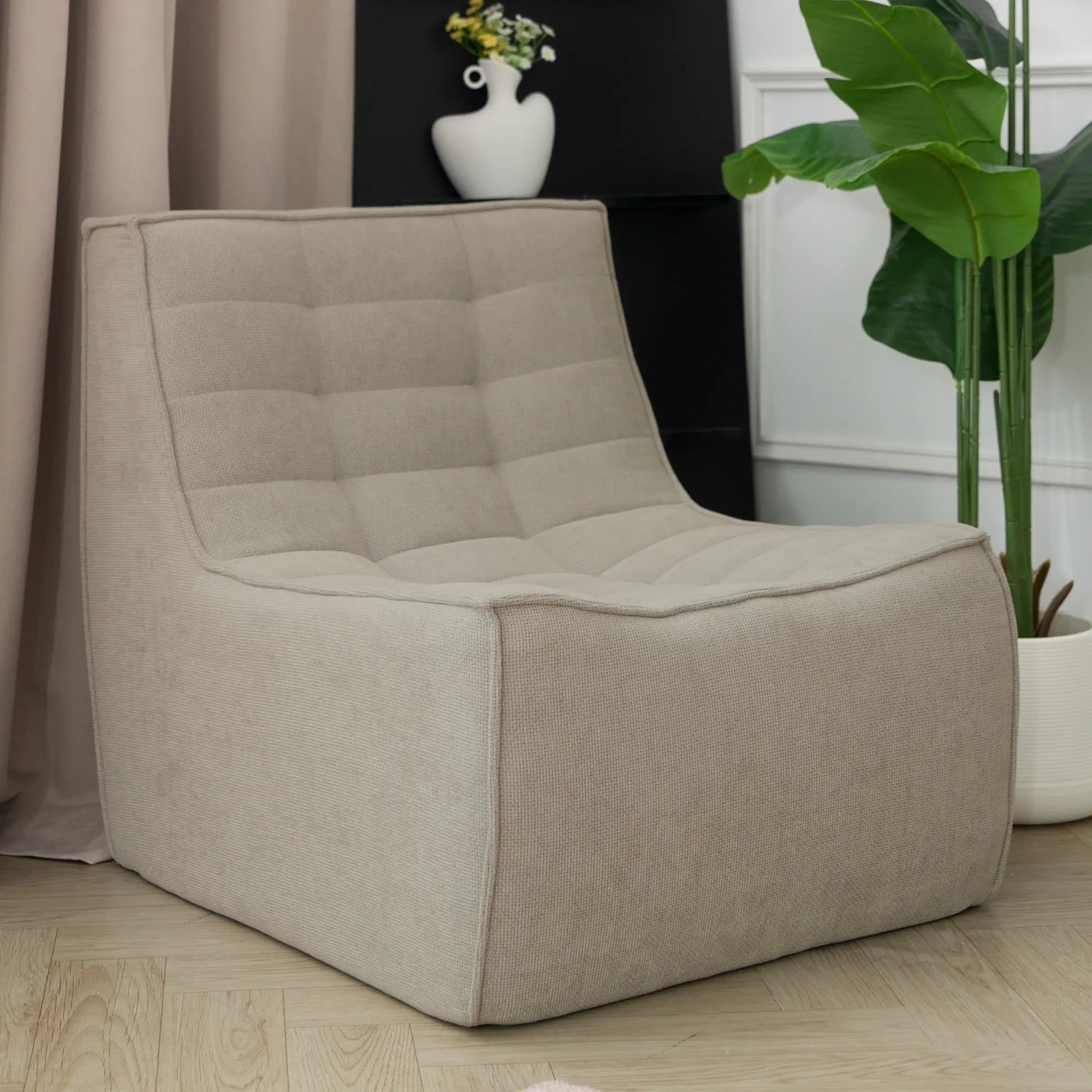 Signature Classic Boneless Couches | 1-Piece Chenille & Linen Khaki Versatile Seating Single Sofa 1-seater