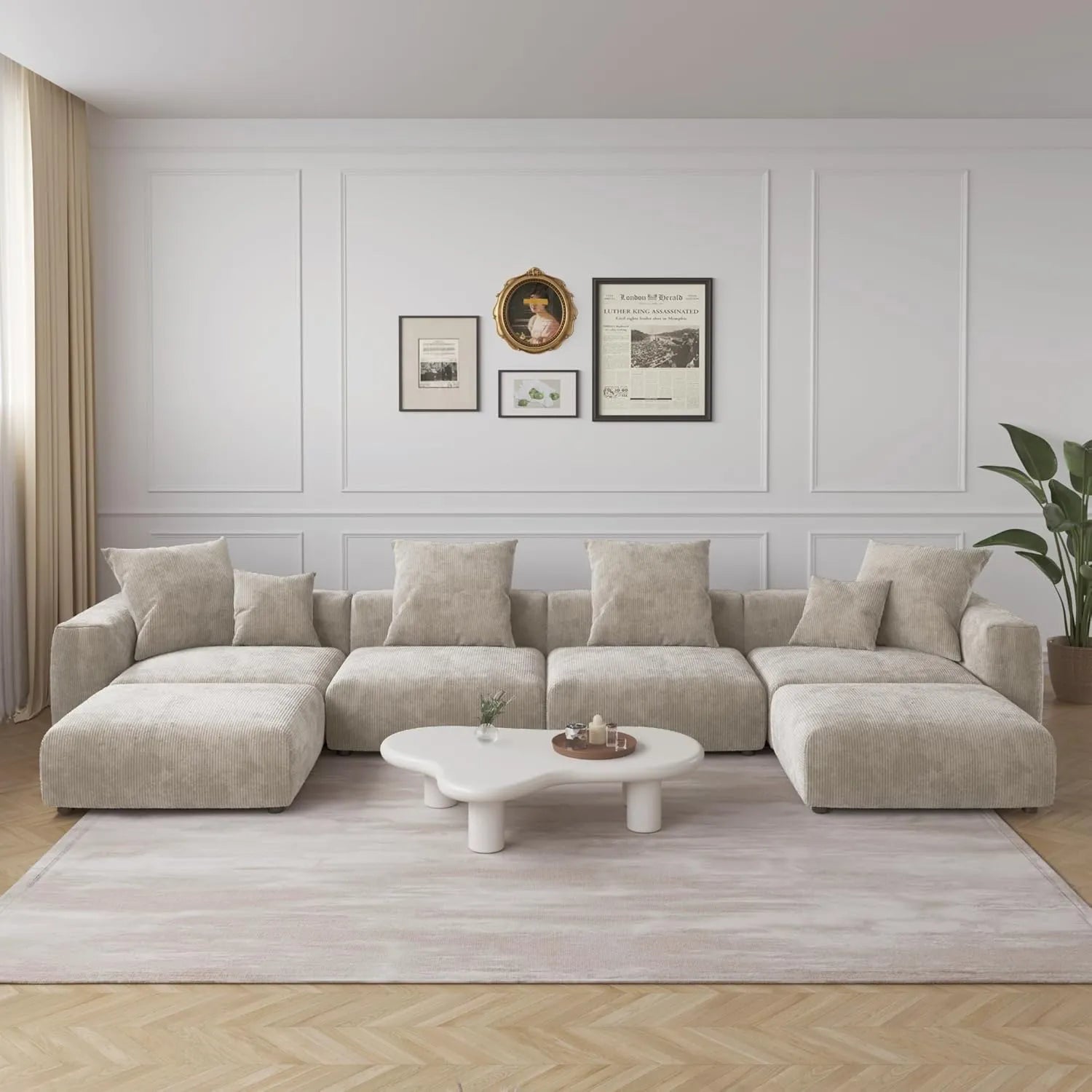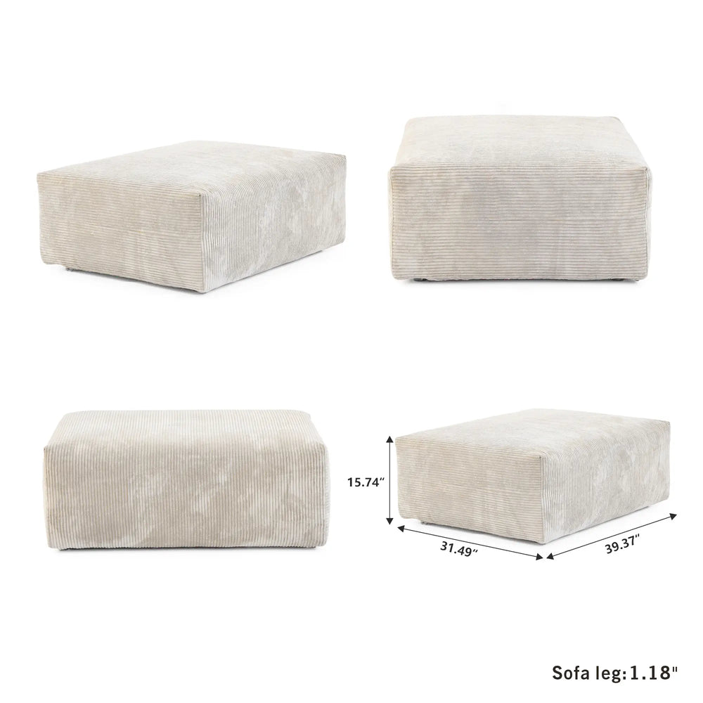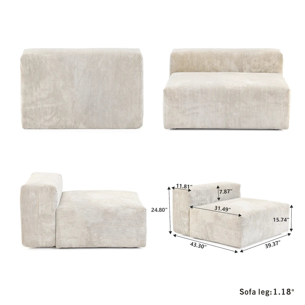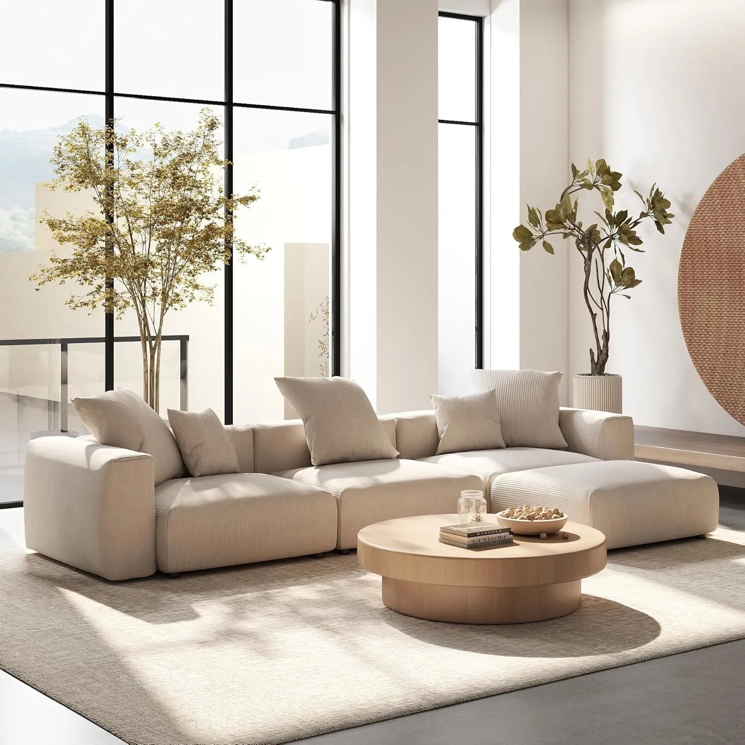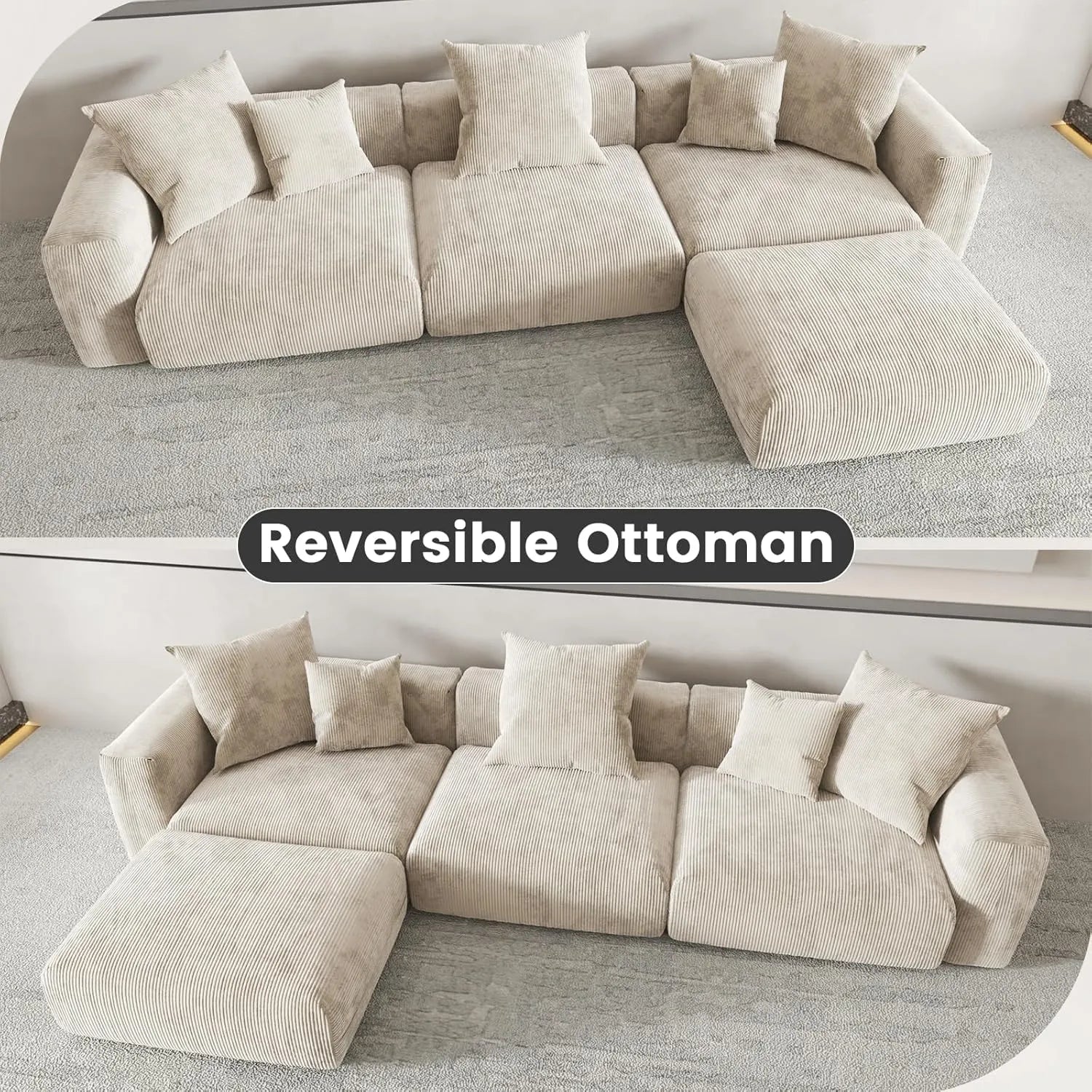 Exclusive Modern Modular Couches | 4-Piece Corduroy Beige Cushions Never Sag L-Shaped Sectionals 3-seaters with 1-Ottomans