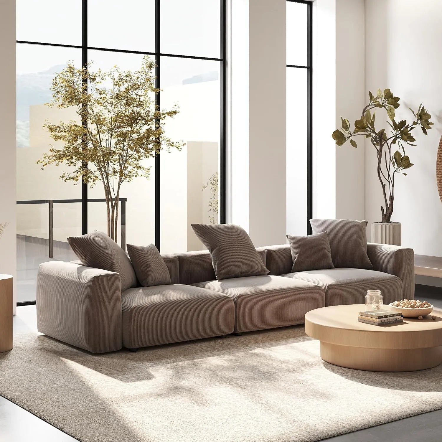 Upholstered in soft corduroy, this couch is not only durable and wrinkle-resistant but also features textured stripes that give it a sleek, modern look.