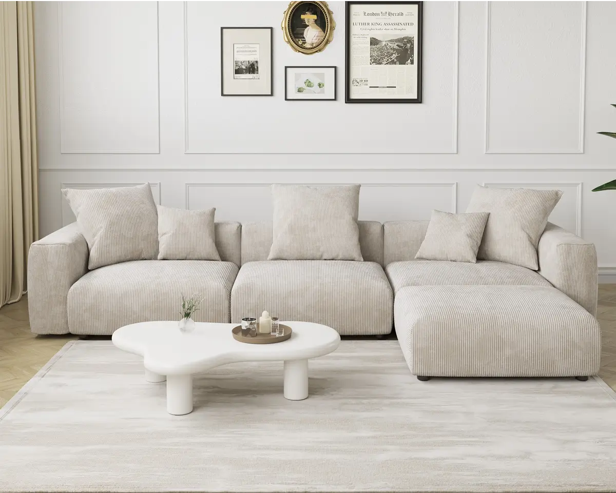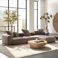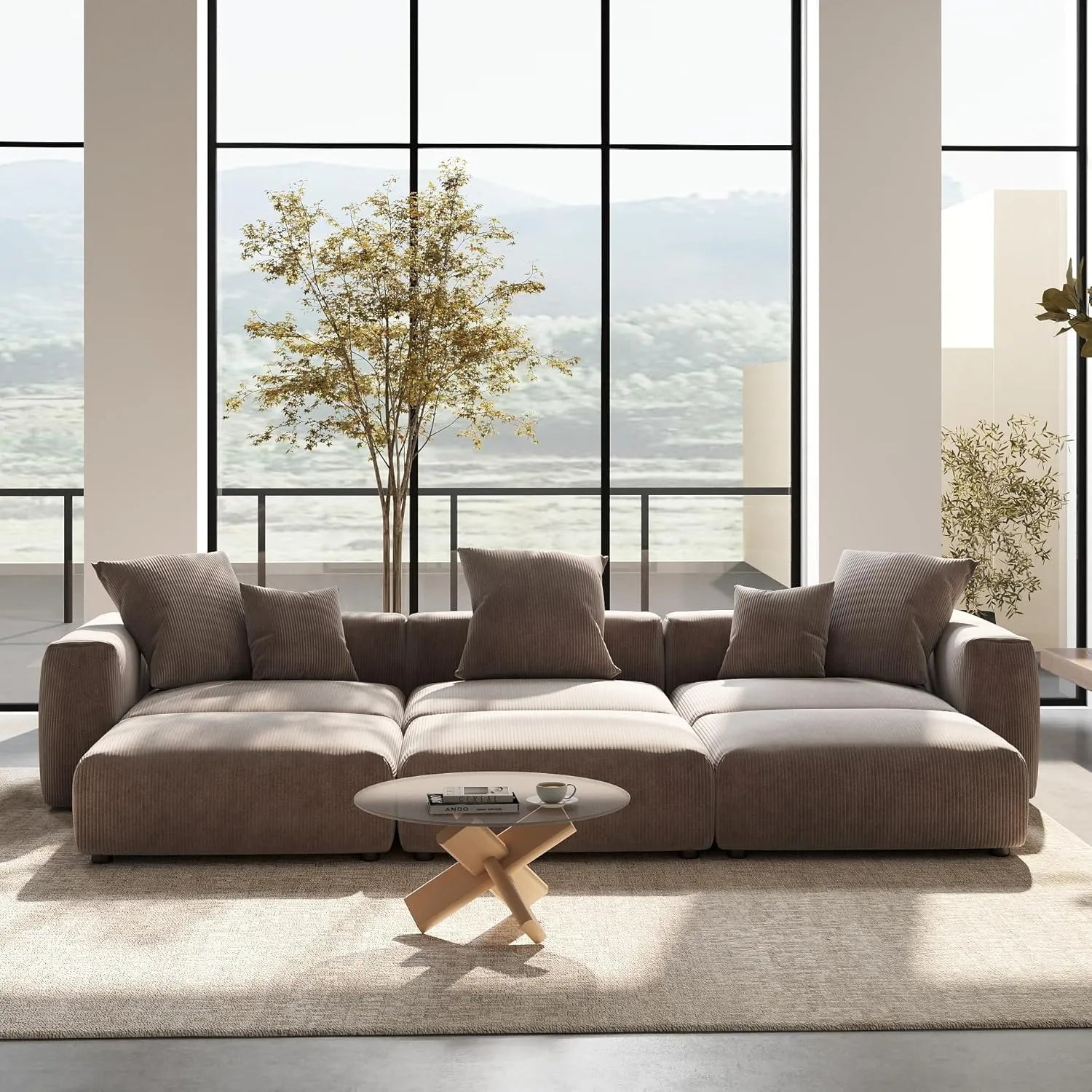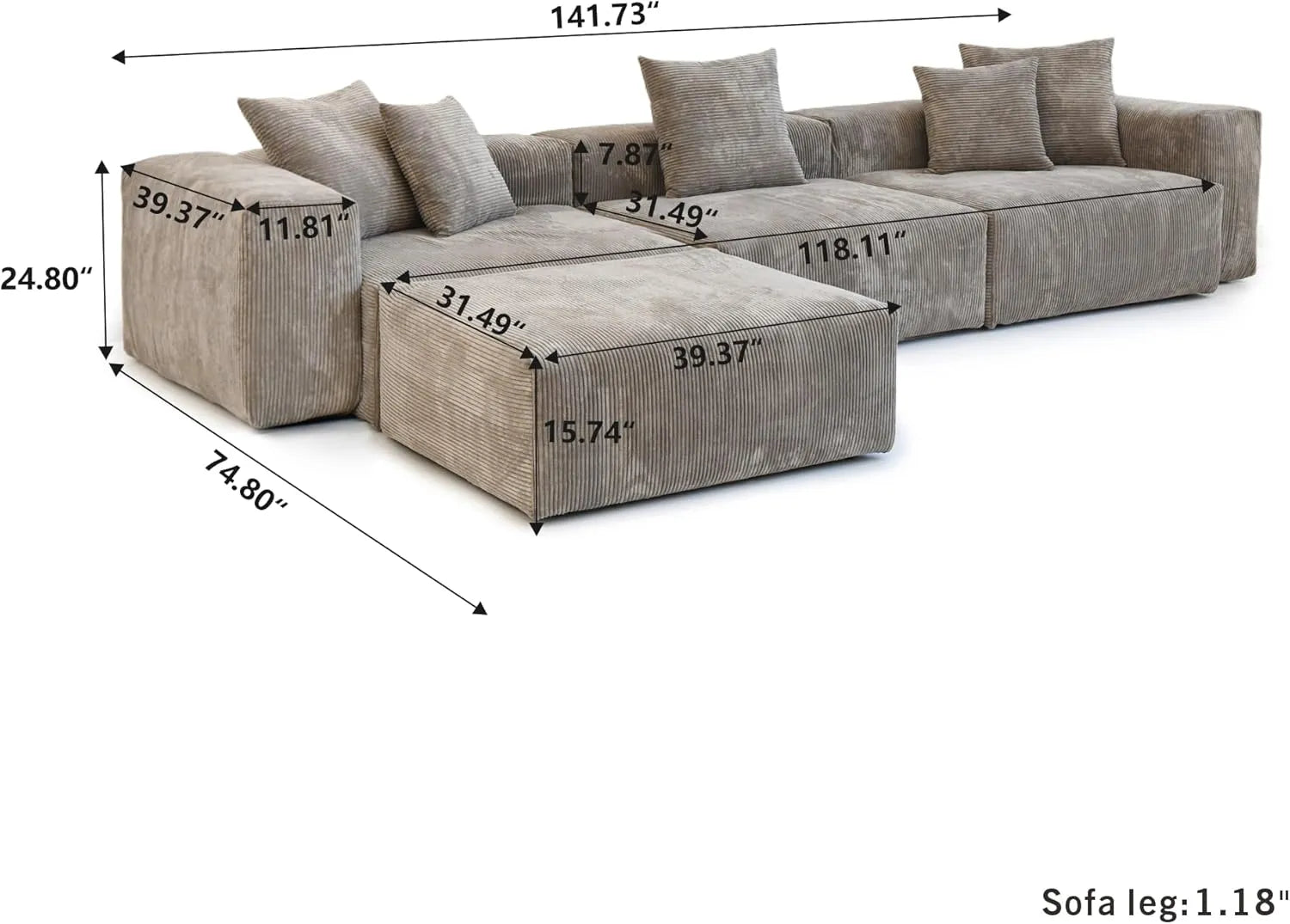 Exclusive Modern Modular Couches | 4-Piece Corduroy Brown Safe For Children L-Shaped Sectionals 3-seaters with 1-Ottomans