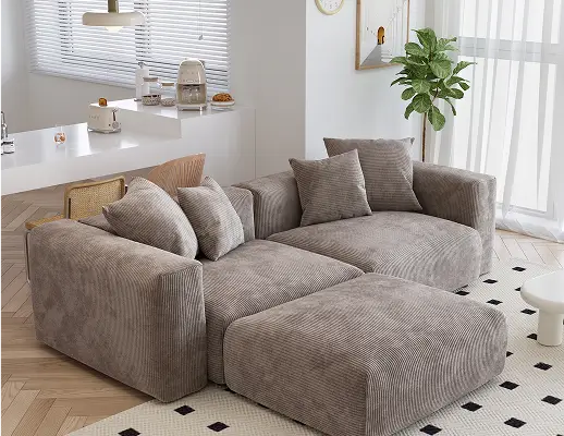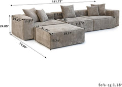4-Piece Corduroy Brown Safe For Children L-Shaped Sectionals 3-seaters with 1-Ottomans