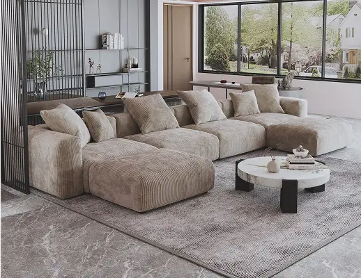 Whether you envision a sleek lounge chaise for a modern apartment or a grand, family-friendly U-shaped couch, its modular structure allows you to customize it for any space.