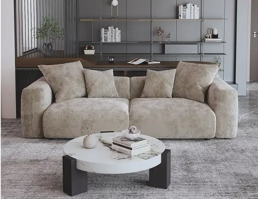 Upholstered in soft corduroy, this couch is not only durable and wrinkle-resistant but also features textured stripes that give it a sleek, modern look.