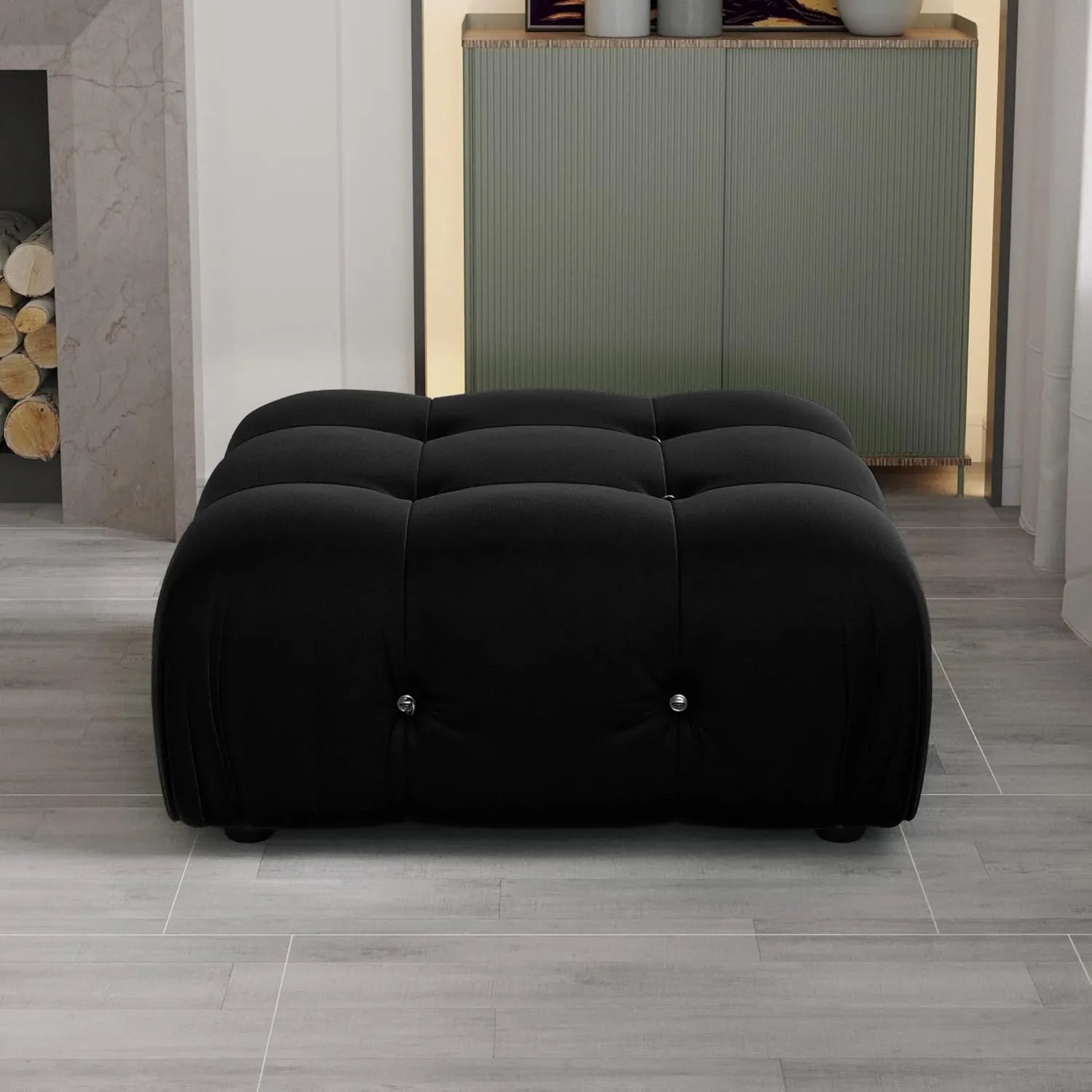 Exclusive Minimalist Modular Couches | 1-Piece Velvet Black Artful Modern Lounging Ottoman