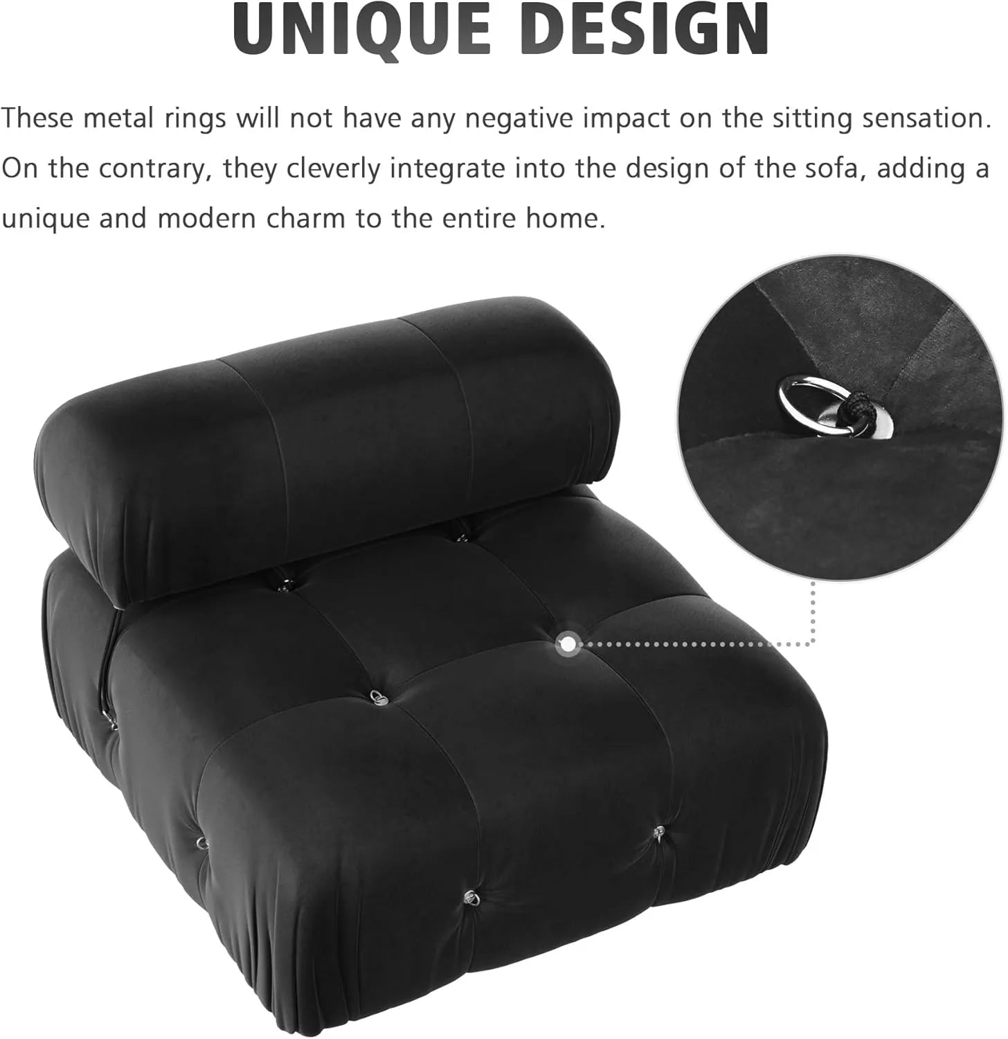 Exclusive Minimalist Modular Couches | 1-Piece Velvet Black Modular Design Single Sofa 1-seater