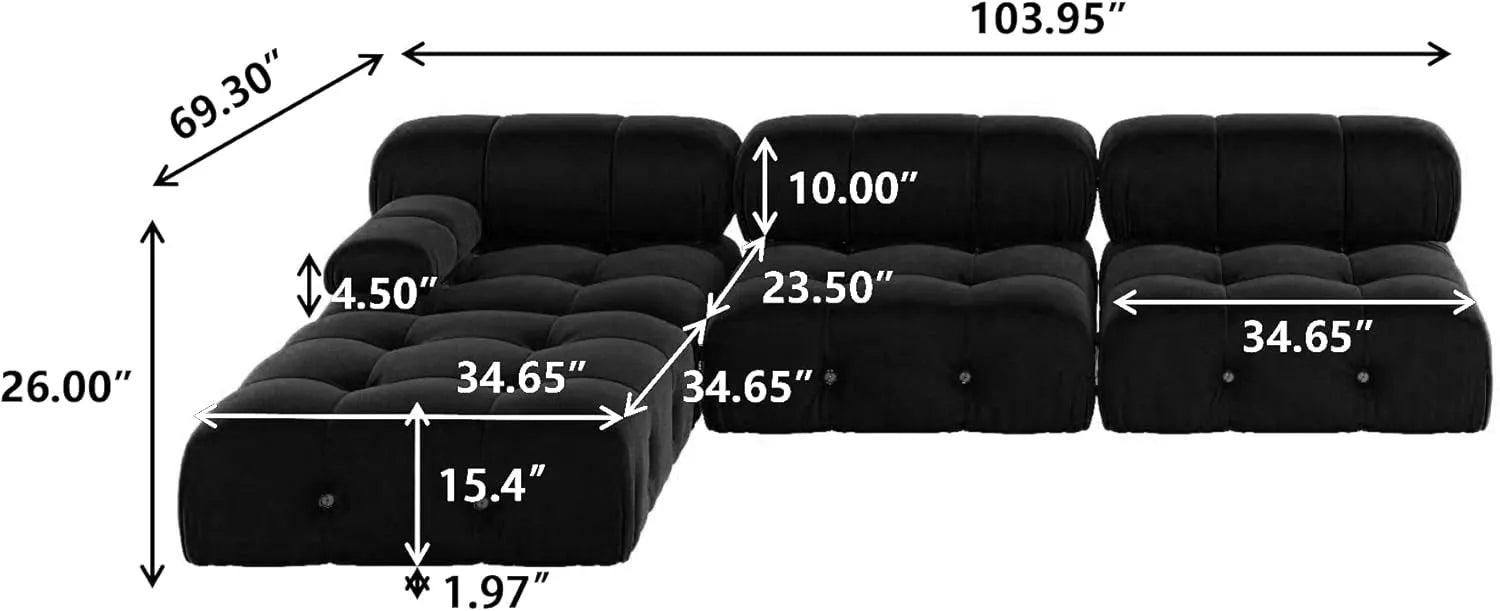 Exclusive Minimalist Modular Couches | 4-Piece Velvet Black Old Style New Style L-Shaped Sectionals 3-seaters with 1-Ottomans
