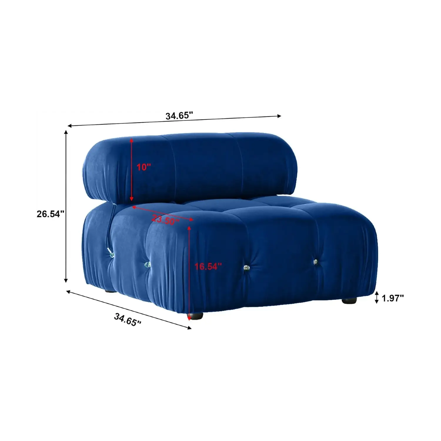 1-Piece Velvet Blue Modular Design Single Sofa 1-seater