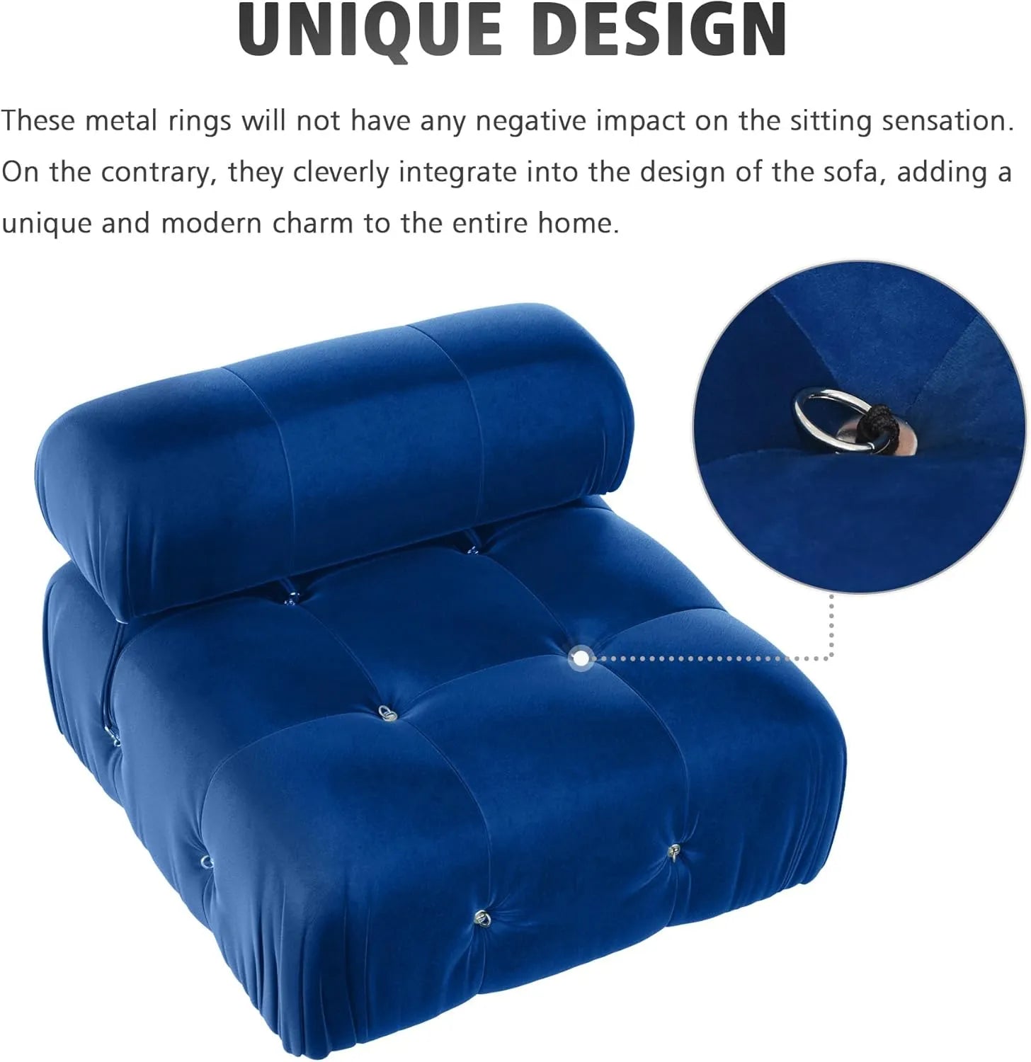 Exclusive Minimalist Modular Couches | 1-Piece Velvet Blue Modular Design Single Sofa 1-seater