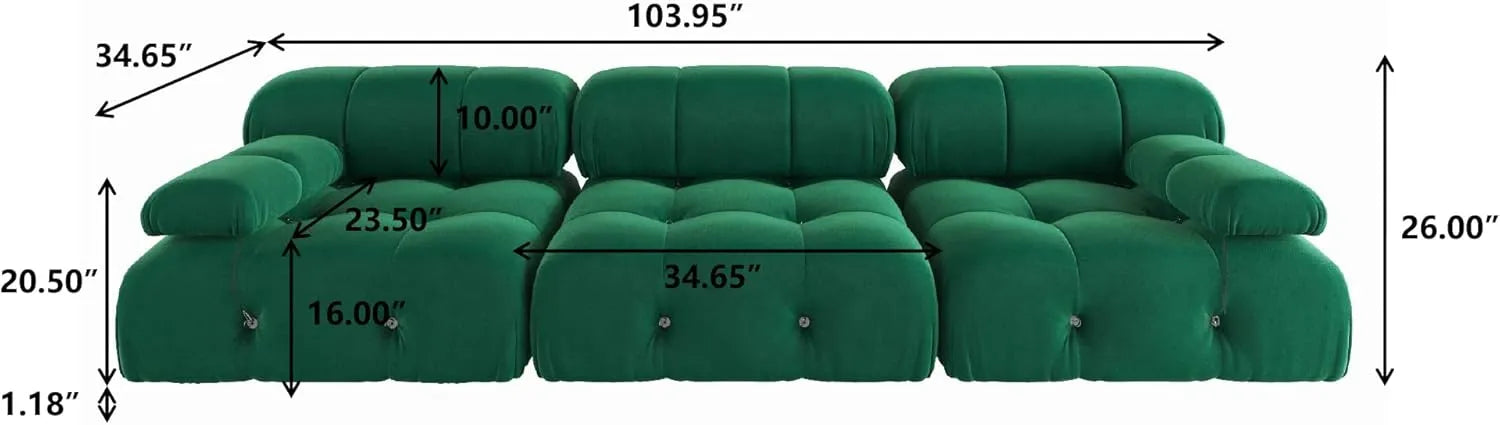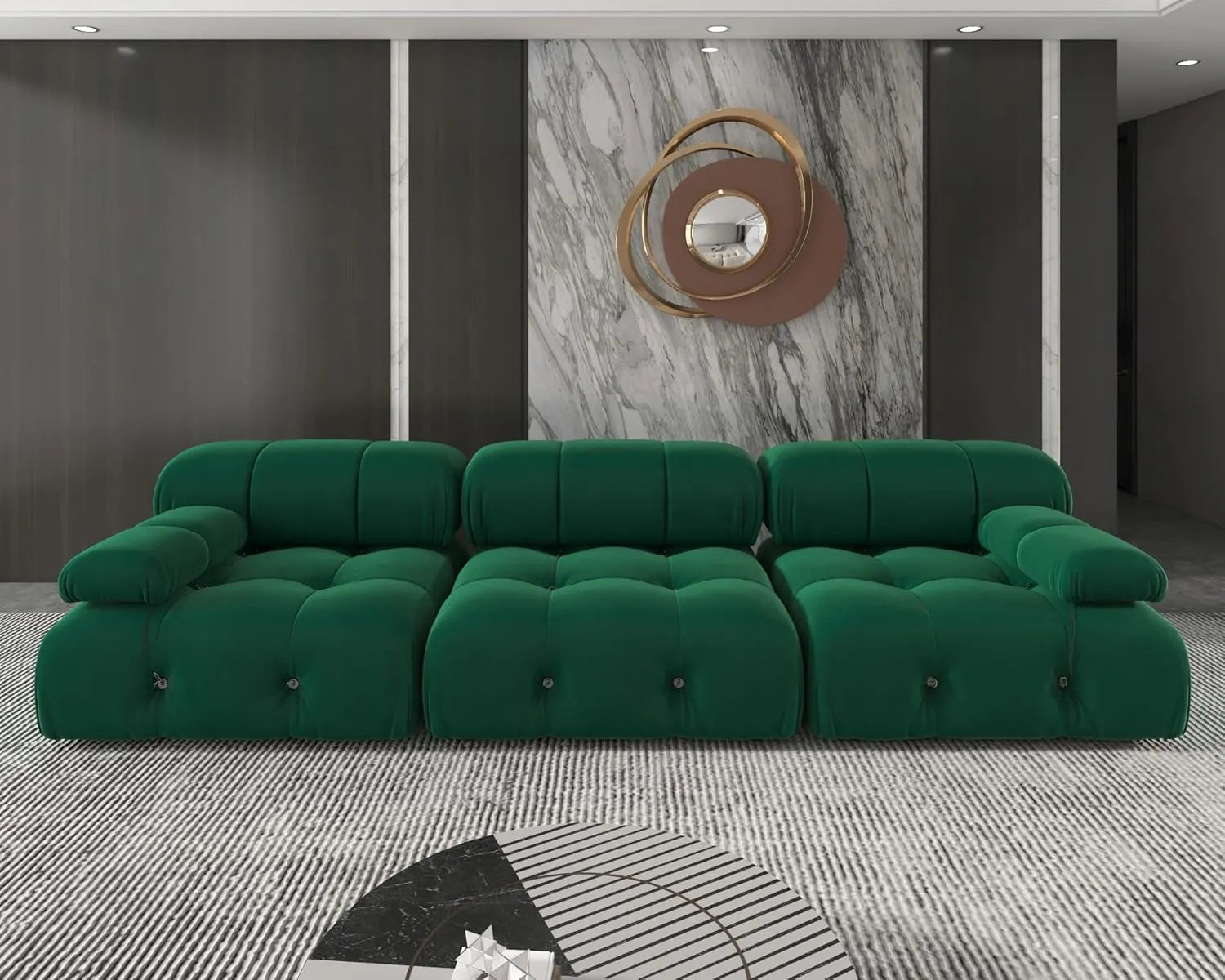 Exclusive Minimalist Modular Couches | 3-Piece Velvet Green Soft Springy Support Couch Sectionals 3-seaters