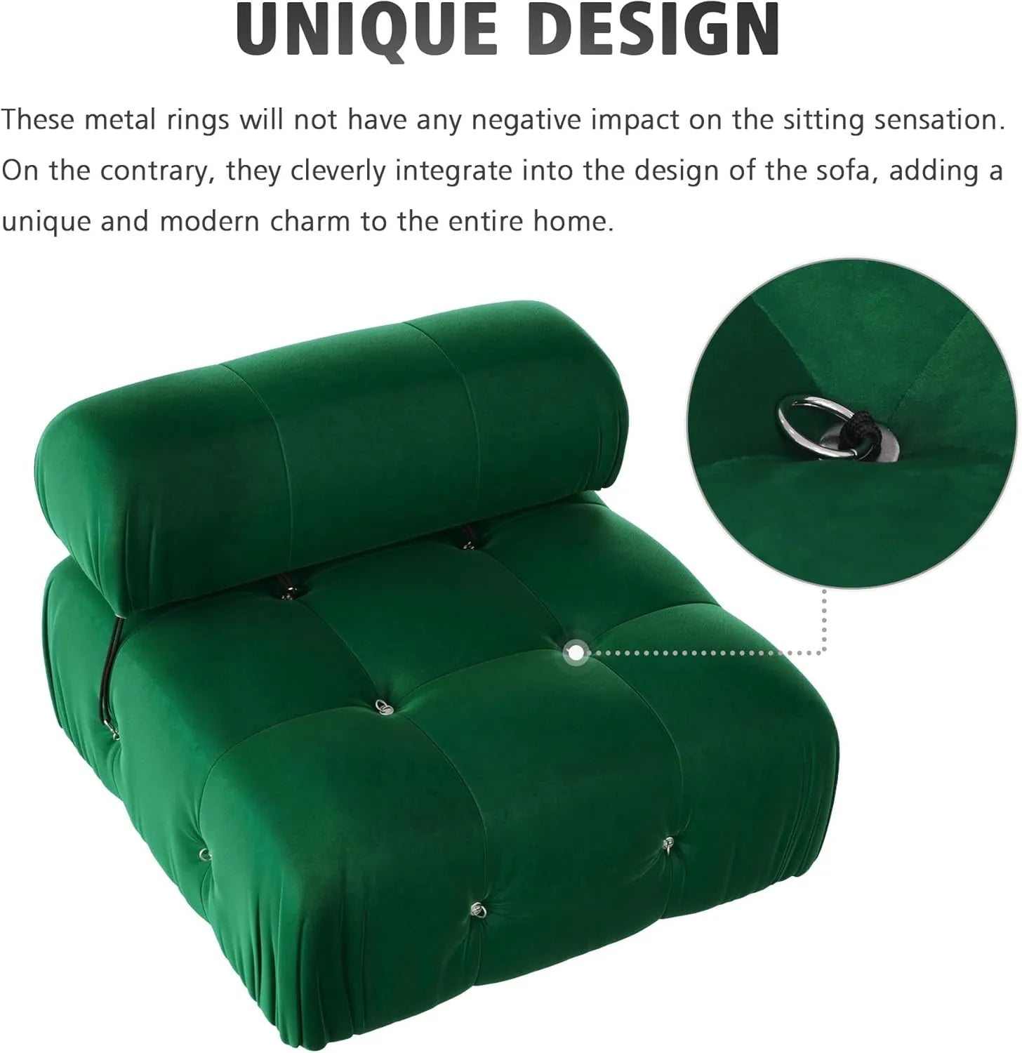 Exclusive Minimalist Modular Couches | 1-Piece Velvet Green Timeless Elegant Charm Single Sofa 1-seater