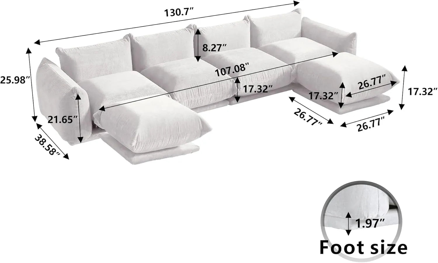 Exclusive Modern Sectional Couches | 6-Piece Chenille Beige Modular Design U-Shaped Sectionals 4-seaters with 2-Ottomans