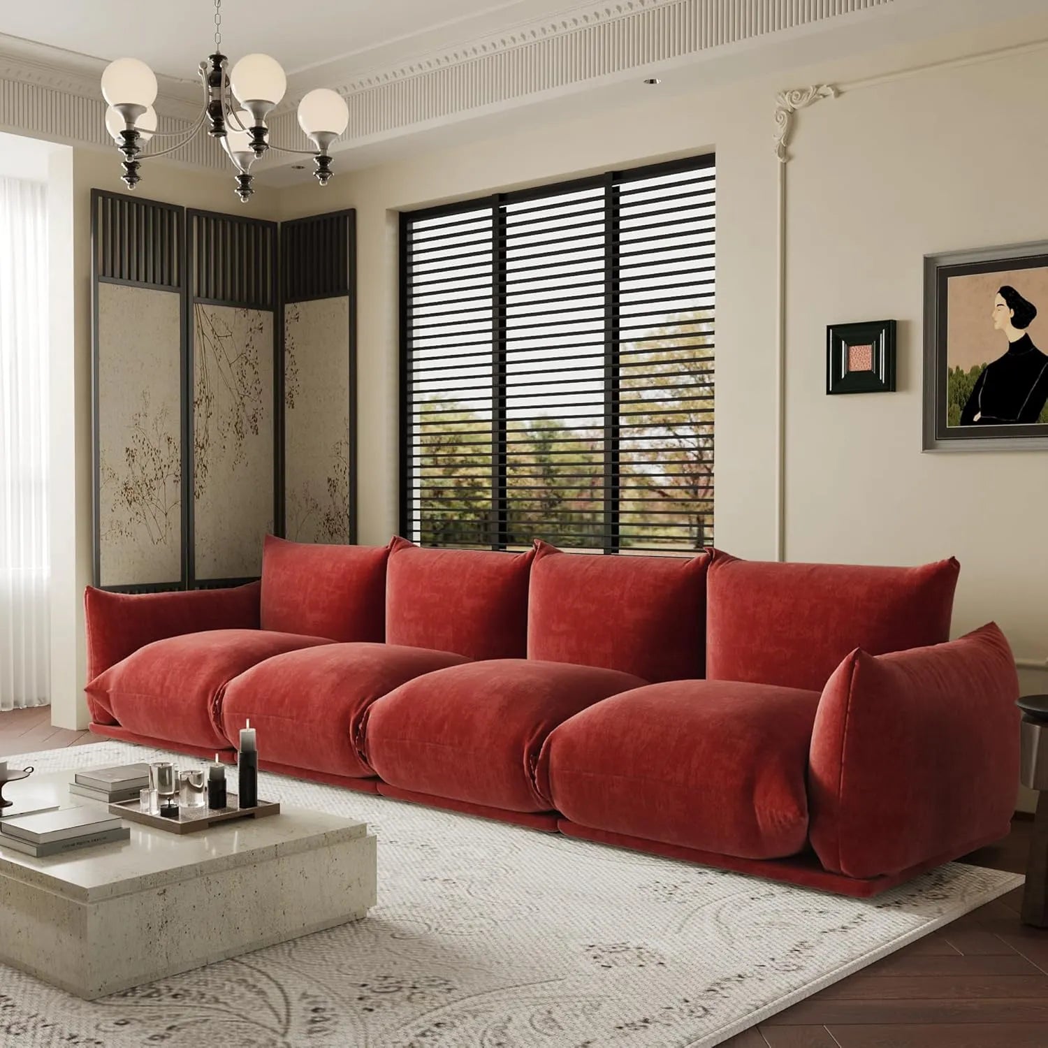 Exclusive Modern Sectional Couches | 4-Piece Chenille Orange Solid Stable Foundation Couch Sectionals 4-seaters
