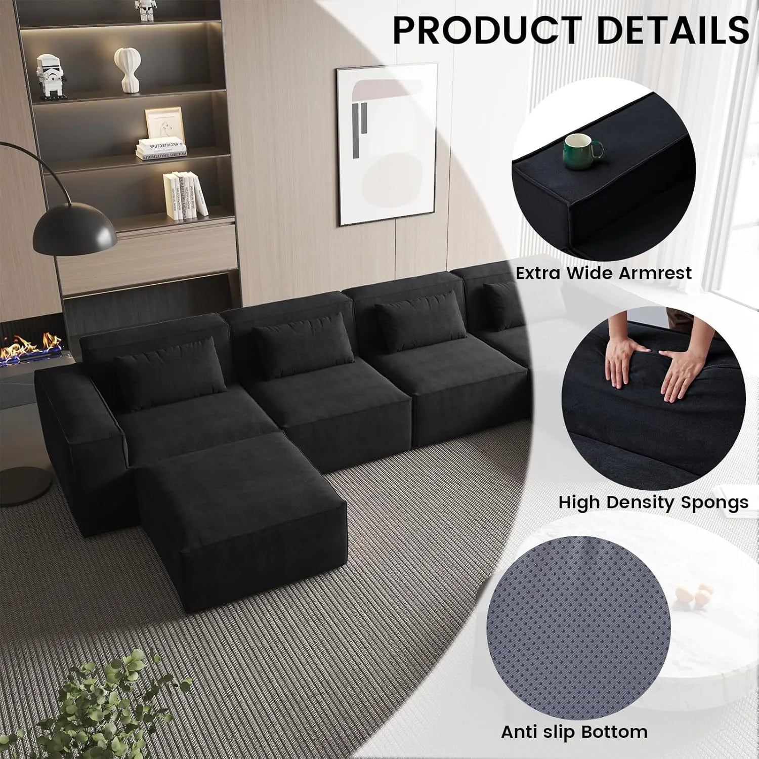 Worried about the sections shifting? An integrated anti-slide buckle at the bottom keeps the couch modules firmly connected.