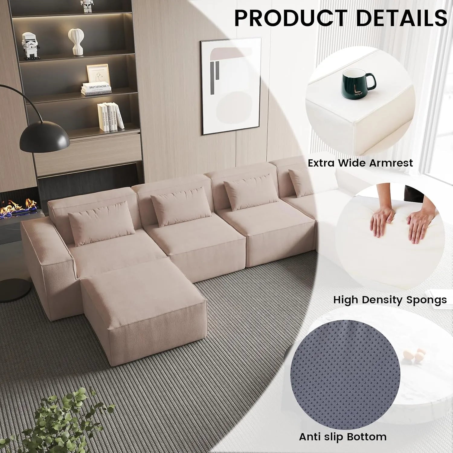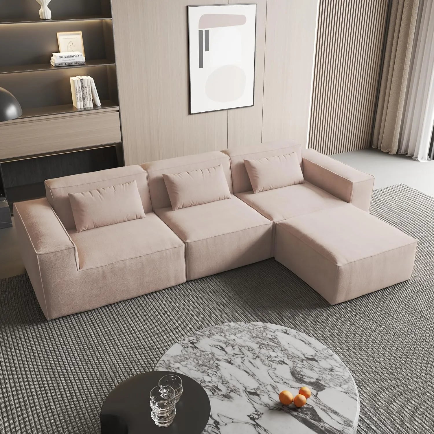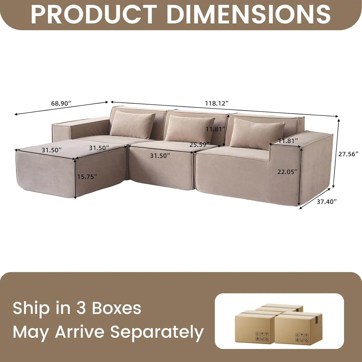 3-Piece Corduroy Brown Cushions Don't Sink L-Shaped Sectionals 3-seaters with 1-Ottomans