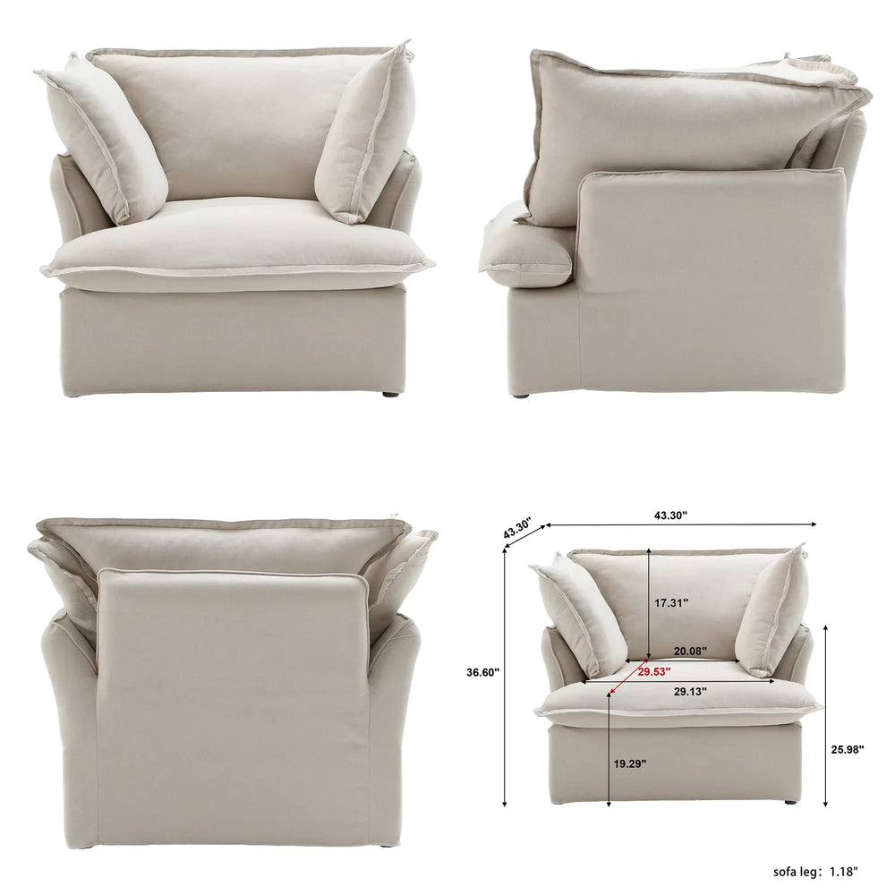 Expansive Seating for Relaxation Engineered for pure leisure, each generous seat module offers an expansive 31.50" width and 29.53" depth. This spacious design invites you to fully unwind.