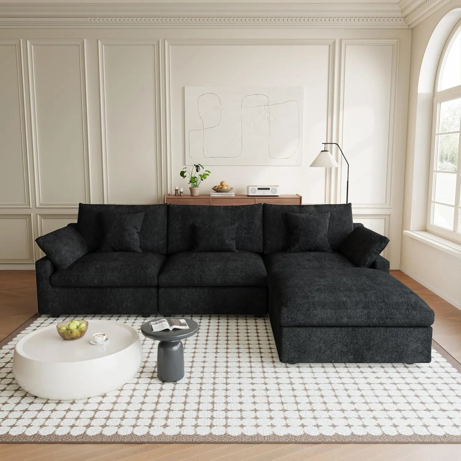 Whether you are creating a cozy reading nook, a serene lounge chaise, or a spacious seating area for family get-togethers, its versatile configuration offers the style and functionality to perfectly complement your lifestyle.