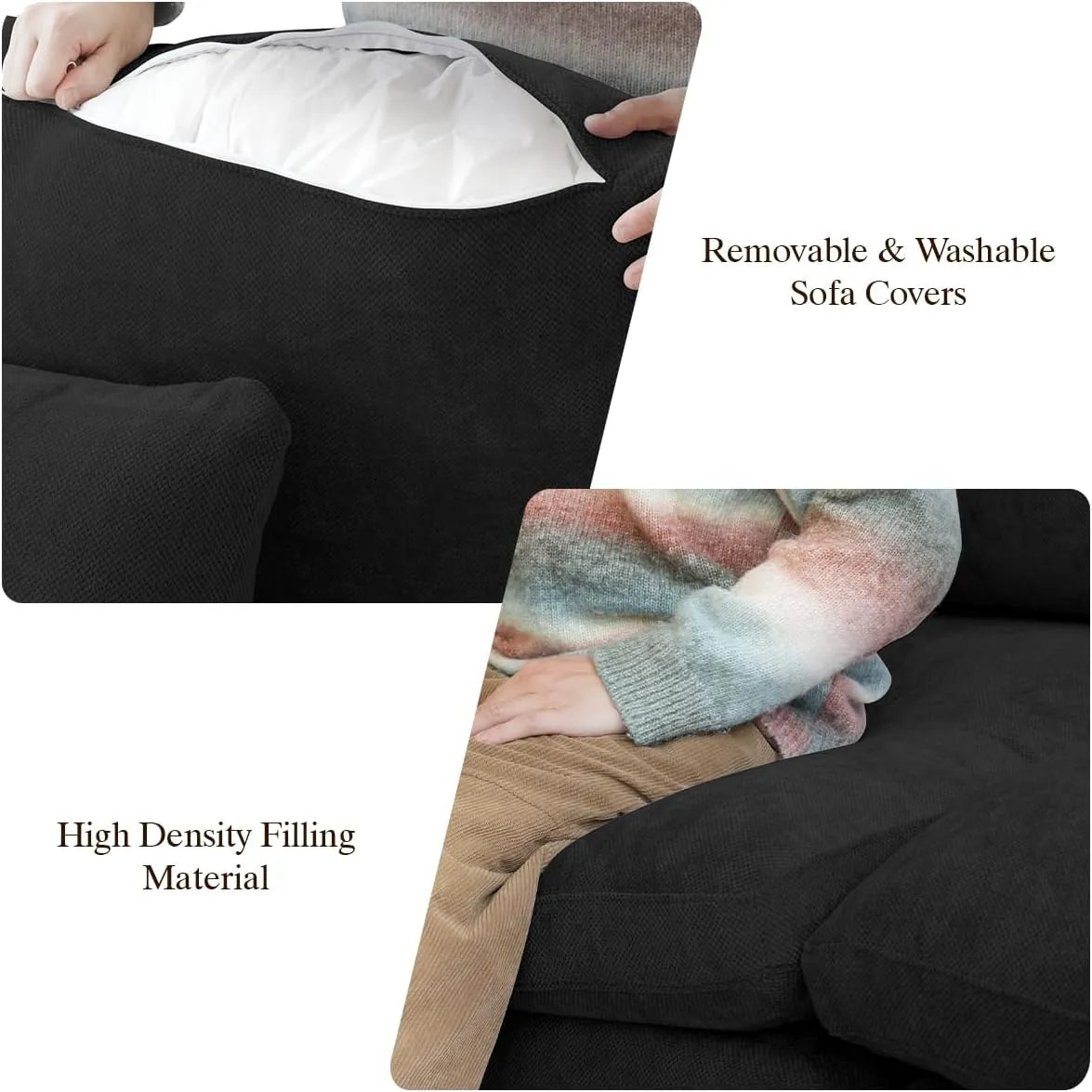 • Soft Seat Cushions: Blend of high-density foam, cotton, and down for plush comfort and support.