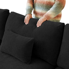 6-Piece Linen Black Comfy Sloped Arms Sofa Sets 4-seaters with 2-Ottomans
