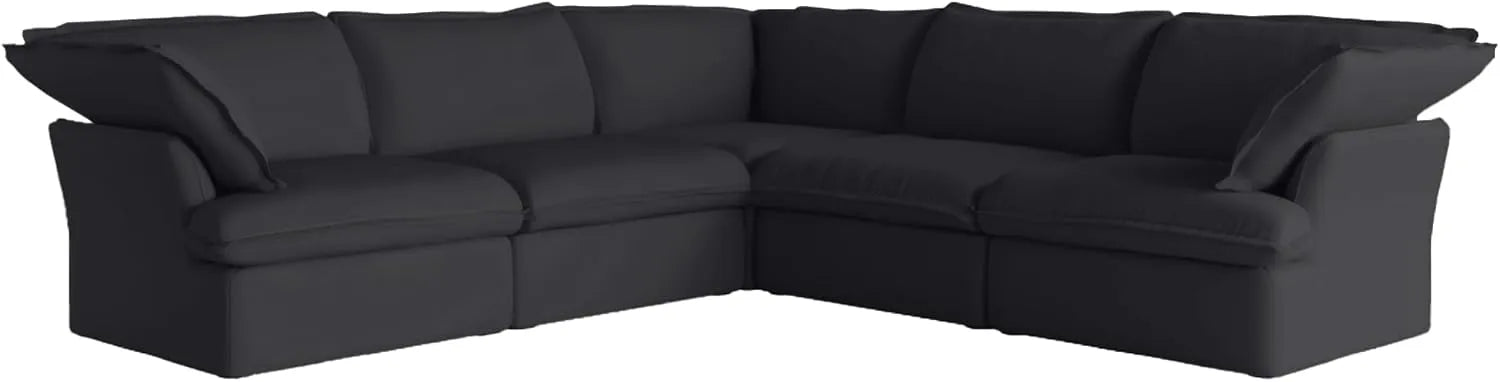 Premium Linen Cloud Sectional Couches | 5-Piece Linen Black Looks Good Anywhere V-Shaped Sectionals 5-seaters