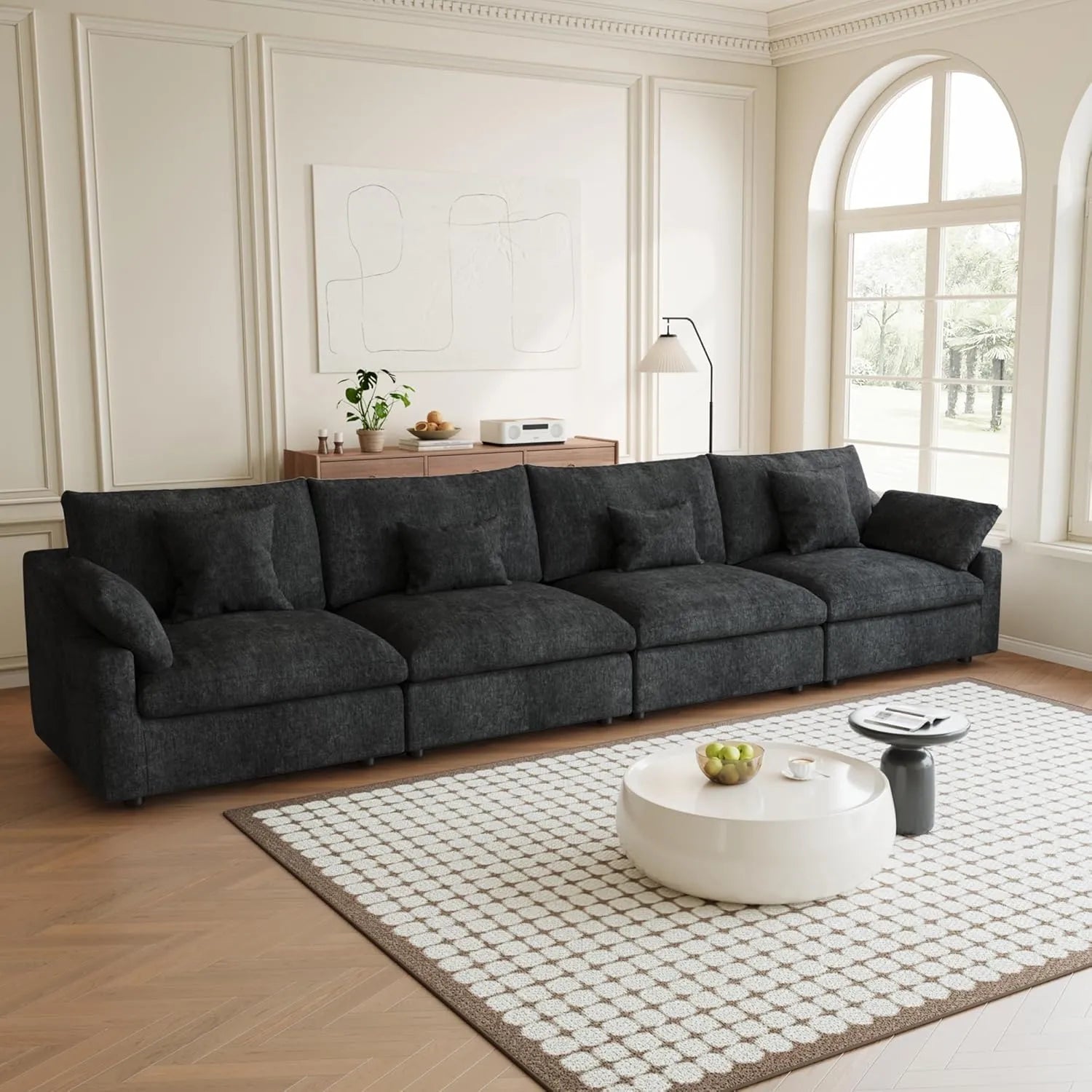 Premium Slope Cloud Sectional Couches | 4-Piece Linen Black Simple Beachy Style Couch Sectionals 4-seaters