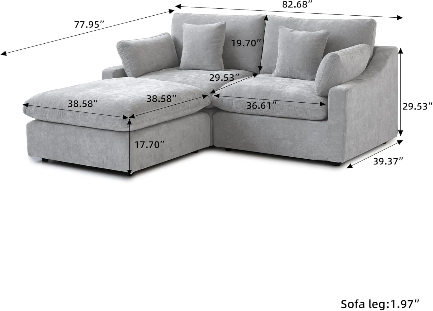 Premium Slope Cloud Sectional Couches | 3-Piece Linen Light Grey A Simple Beachy Look Chaise Sectionals 2-seaters with 1-Ottomans