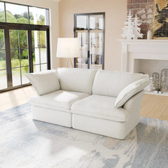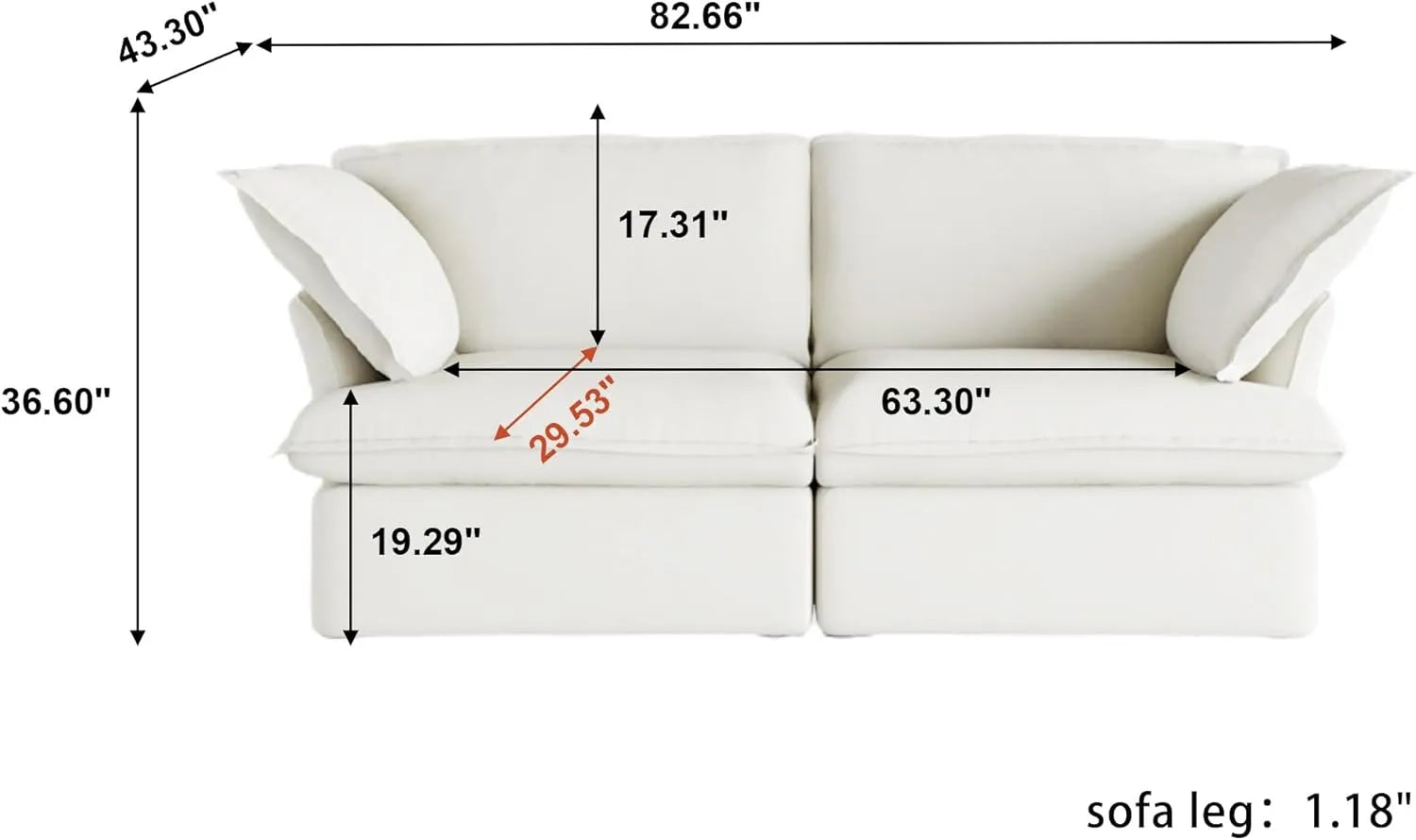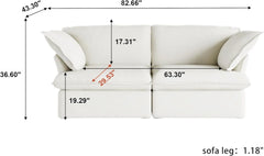 Premium Linen Cloud Sectional Couches | 2-Piece Linen White Clean Simple Style Loveseats 2-seaters