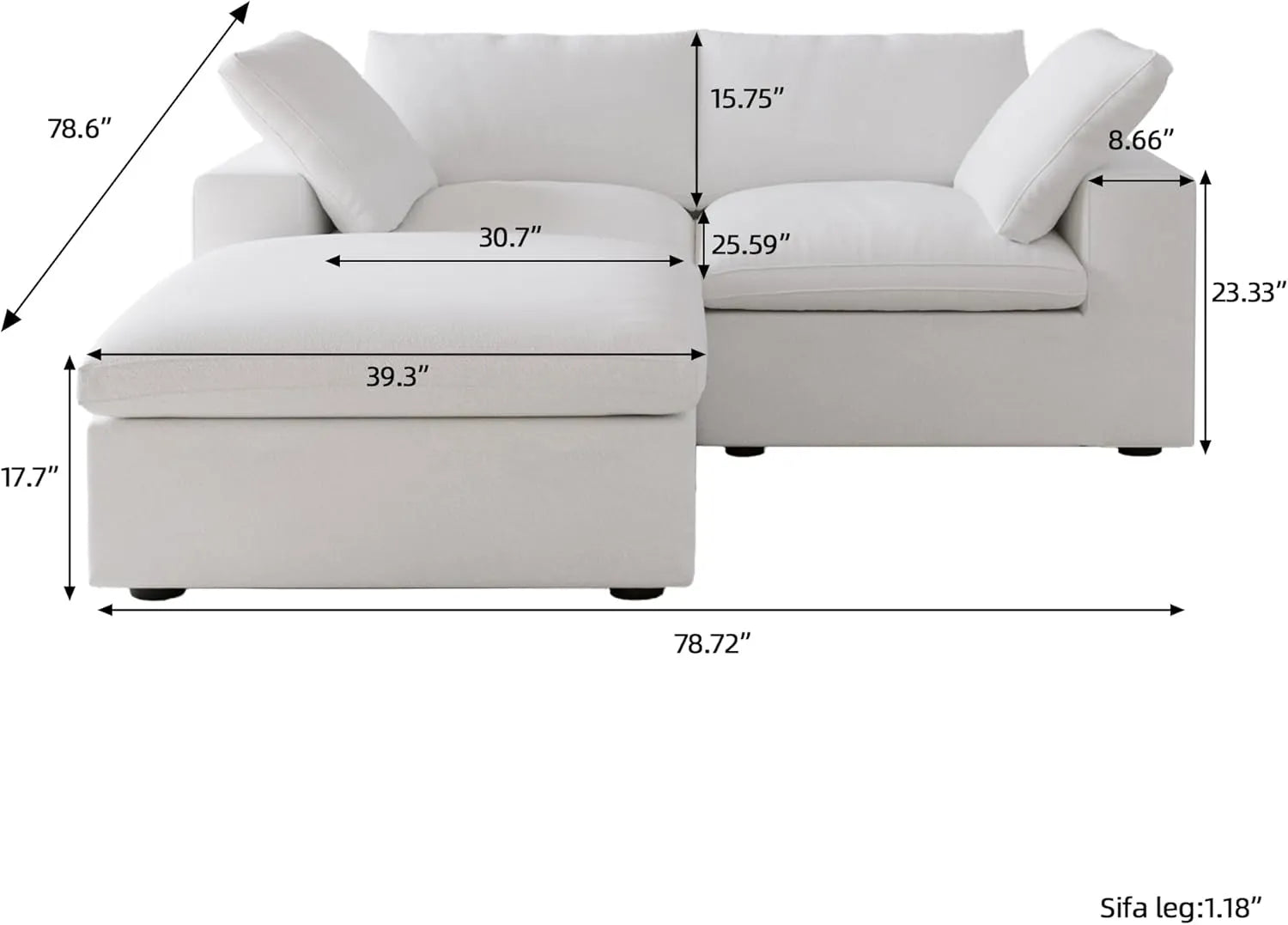 Designed for pure leisure, with each seat offering a generous 25.59" depth. This provides ample space for you to lounge, sit cross-legged, or stretch out in complete comfort.