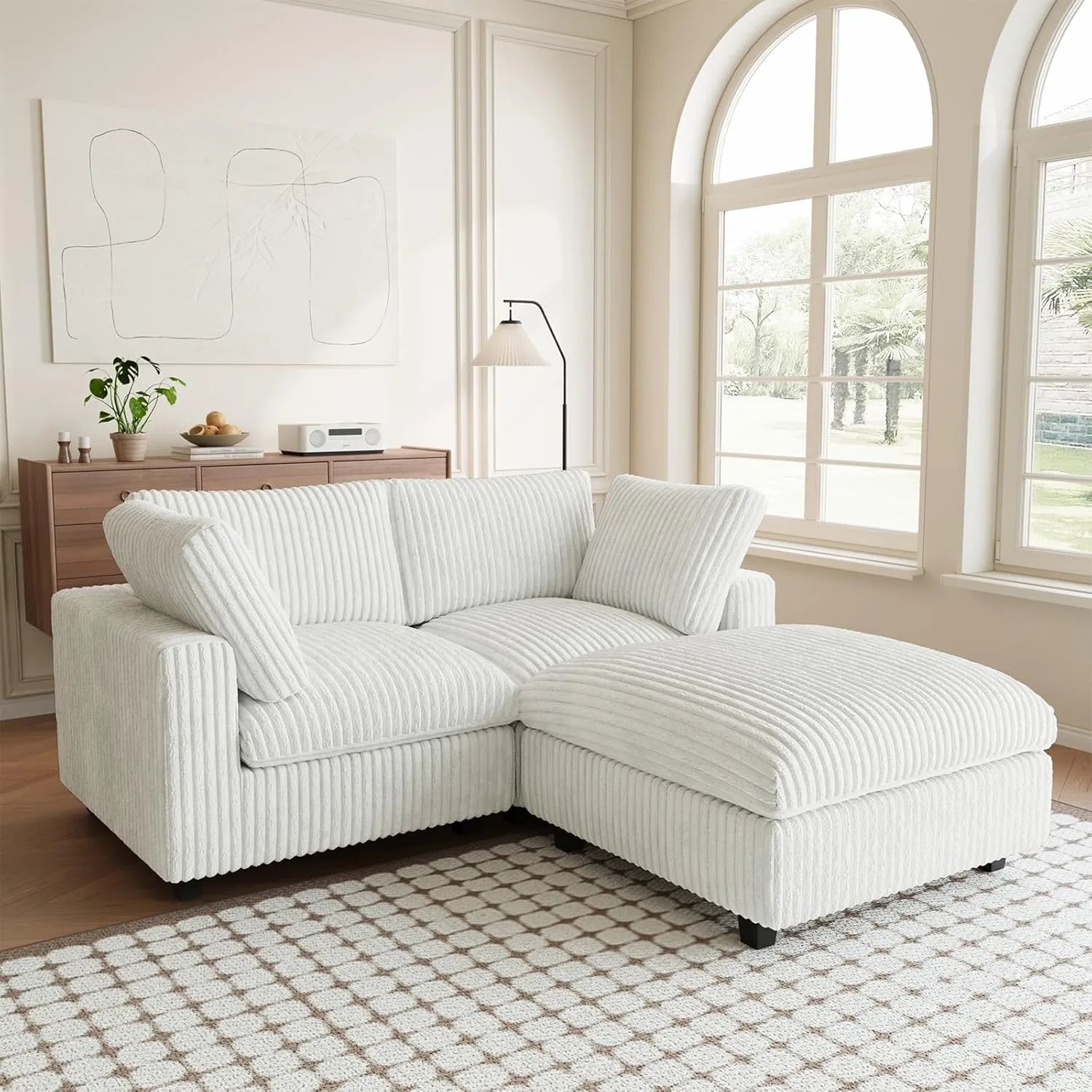 3-Piece Plush Fabric Beige Secure Plush Texture Chaise Sectionals 2-seaters with 1-Ottomans