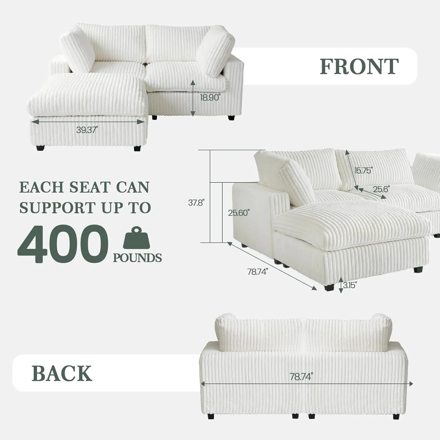 • Cloud-Like Cotton Backrests: Soft, fluffy support.