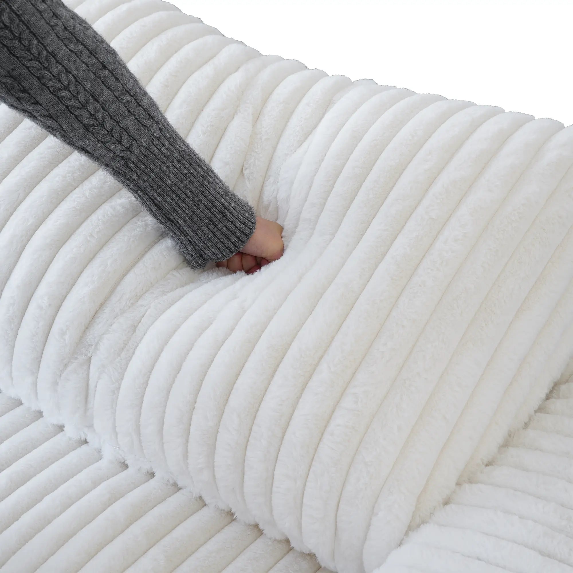 Inspired by this deep-seated need for comfort, our designer created the Premium Classic Cloud Sectional Couch. Its slipcover is crafted from a faux rabbit fur fabric, offering a silky and luxuriously soft touch.