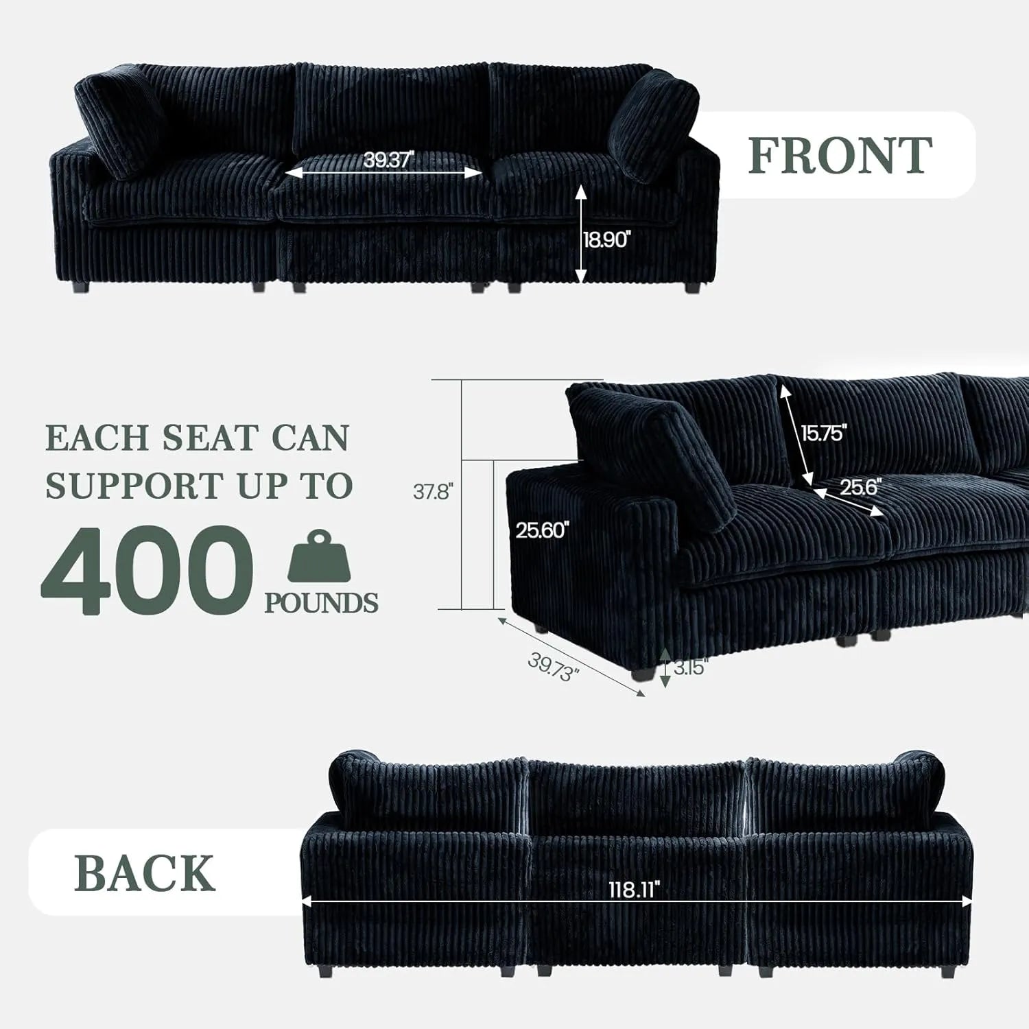 Premium Classic Cloud Sectional Couches | 3-Piece Plush Fabric Black Modular Design Couch Sectionals 3-seaters
