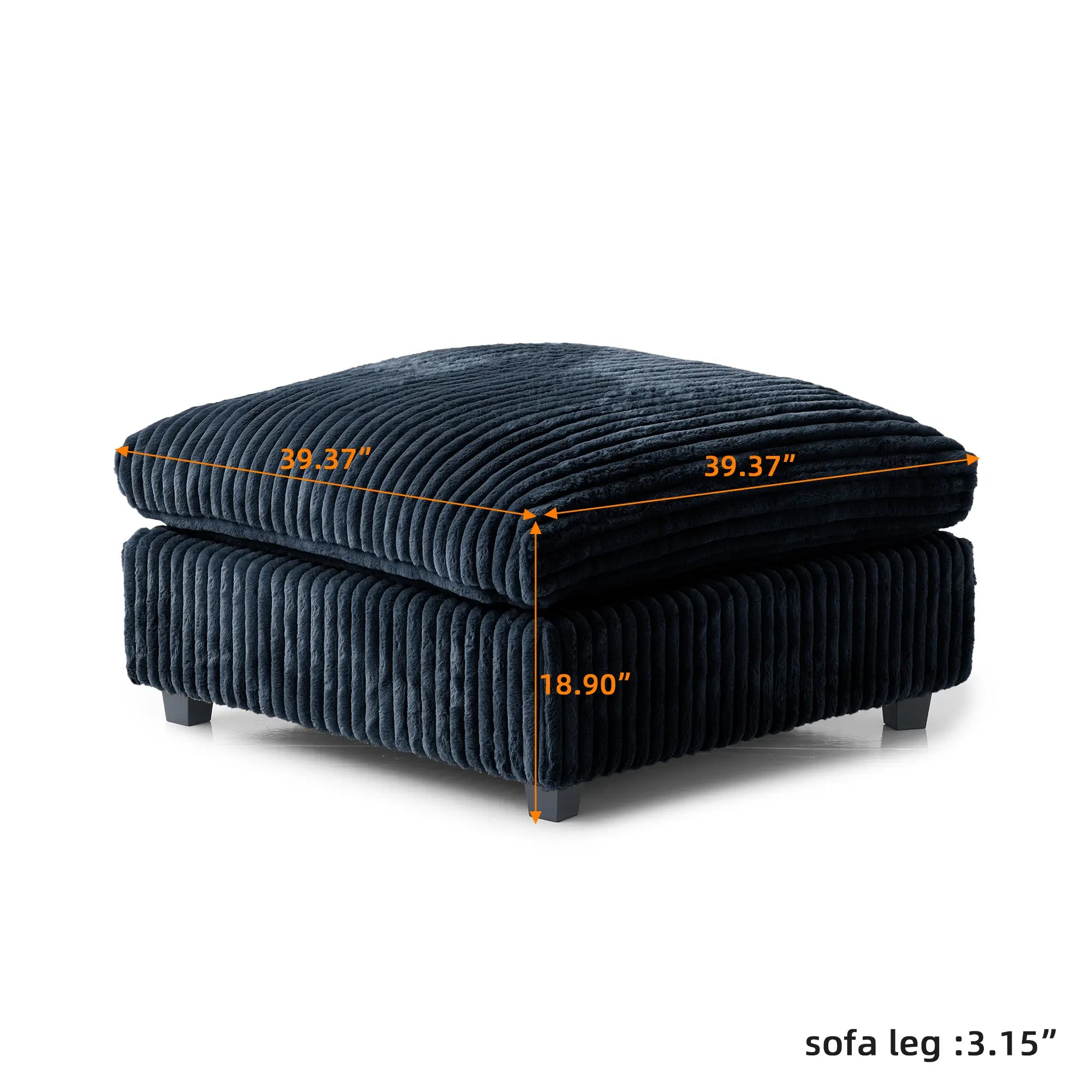 1-Piece Plush Fabric Black Sink-In Spacious Seating Ottoman