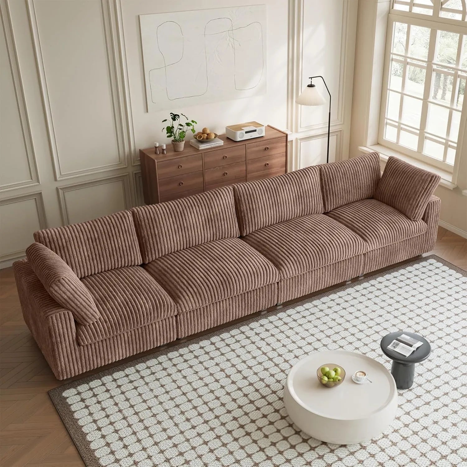 Premium Classic Cloud Sectional Couches | 4-Piece Plush Fabric Brown Big Comfy Shape Couch Sectionals 4-seaters