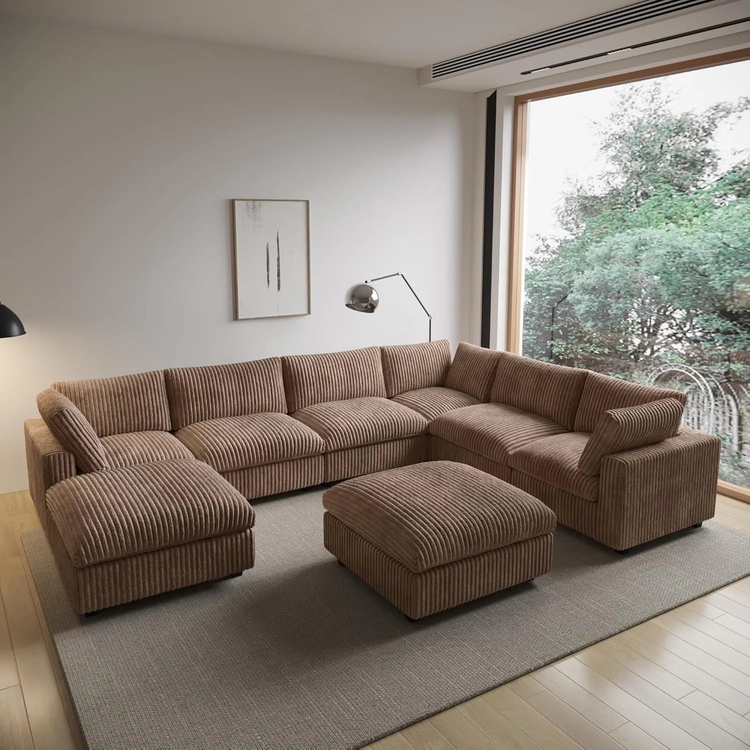 8-Piece Plush Fabric Brown Modular Design Sofa Sets 6-seaters with 2-Ottomans