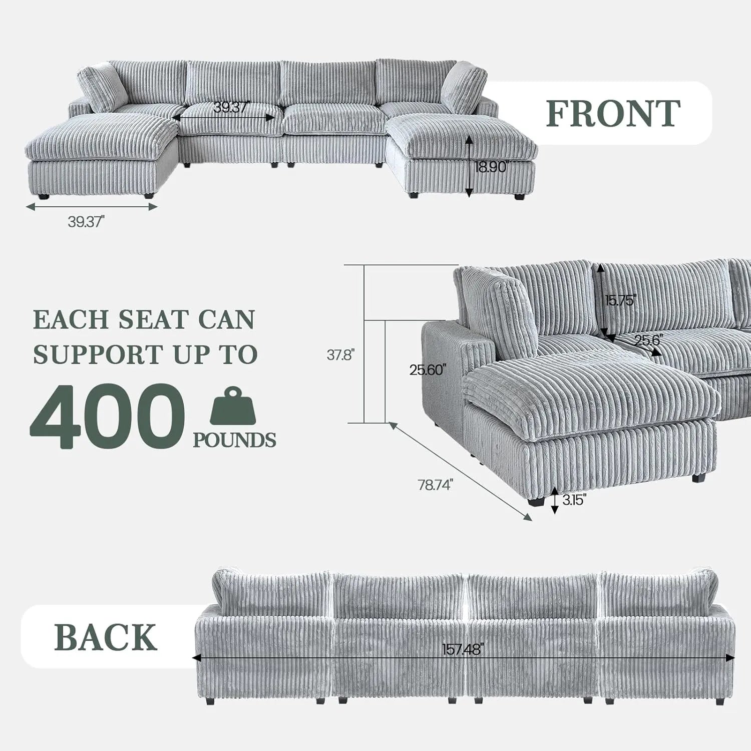 Premium Classic Cloud Sectional Couch is crafted to adapt to your life. Whether you envision a cozy lounge chaise for yourself or a grand U-shaped couch for the whole family, its modular design offers limitless ways to configure your perfect living space.