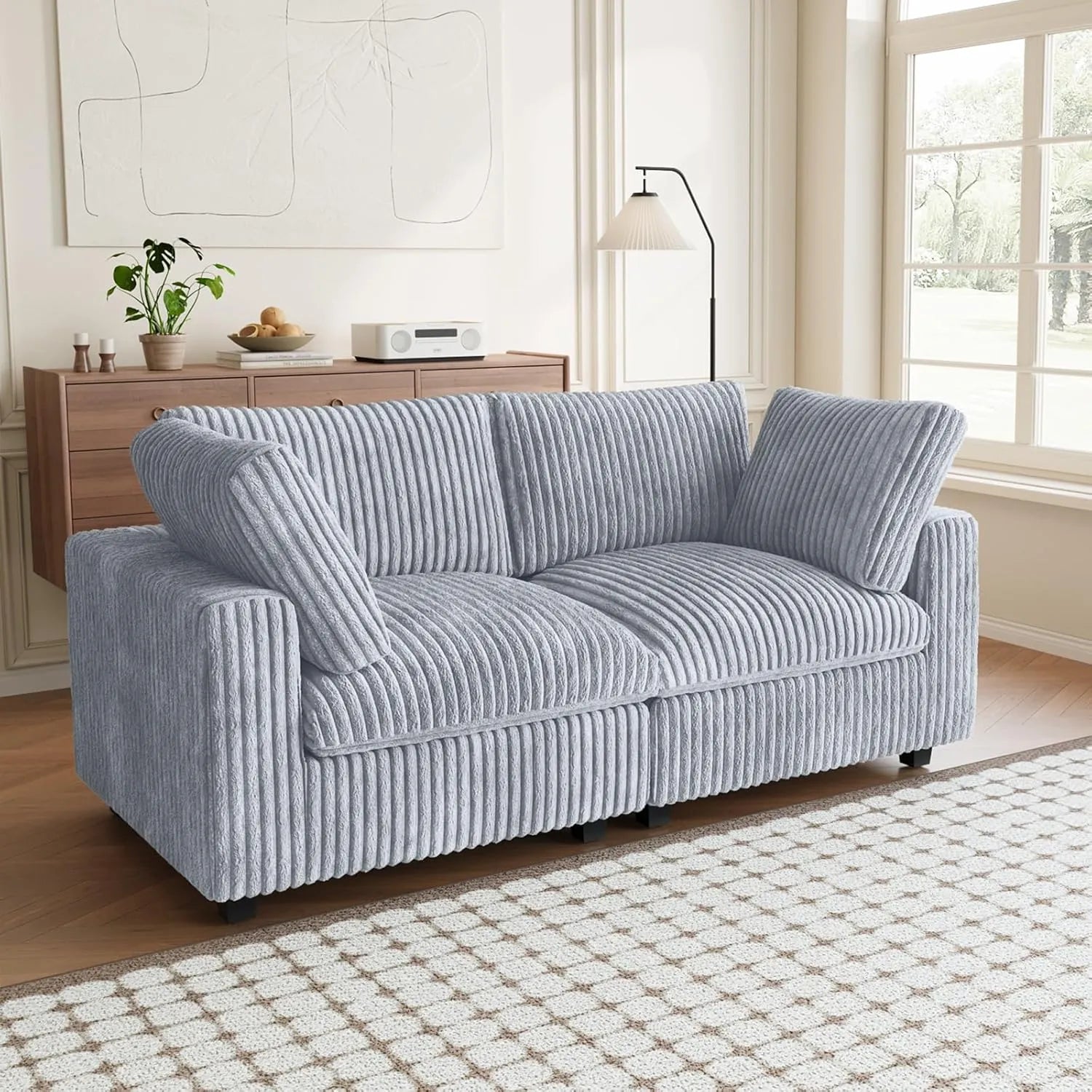 Premium Classic Cloud Sectional Couches | 2-Piece Plush Fabric Light Grey Secure Plush Texture Loveseats 2-seaters