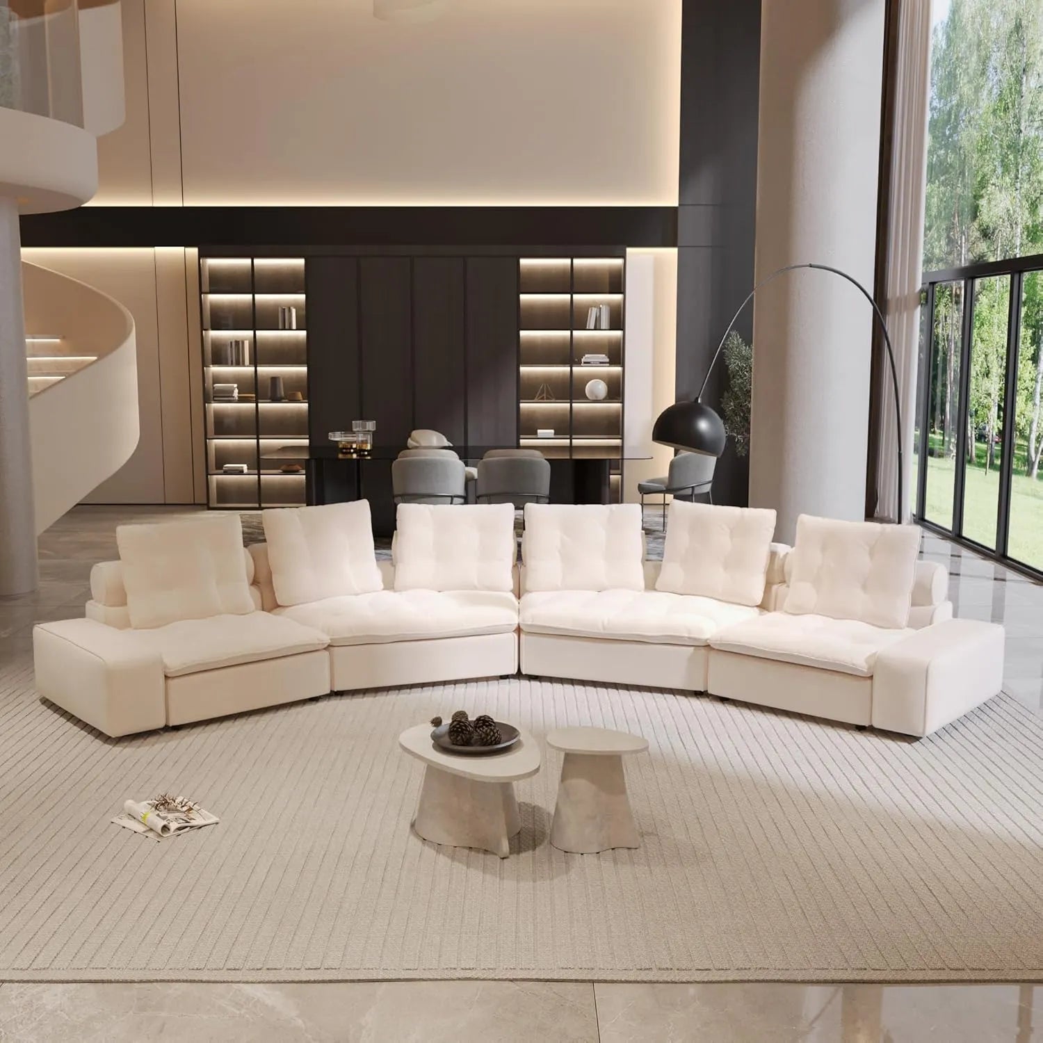 The Premium Adjustable Cloud Sectional Couch elevates your comfort with its generous seating and intelligent modularity, making it an ideal choice for larger living areas. A distinctive curved corner piece even allows you to design a uniquely rounded sectional.