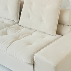 The cushion filling is masterfully layered with foam, down, cotton, and springs. Each material is optimized in a perfect ratio to create a seating experience that is exceptionally soft yet supportive.