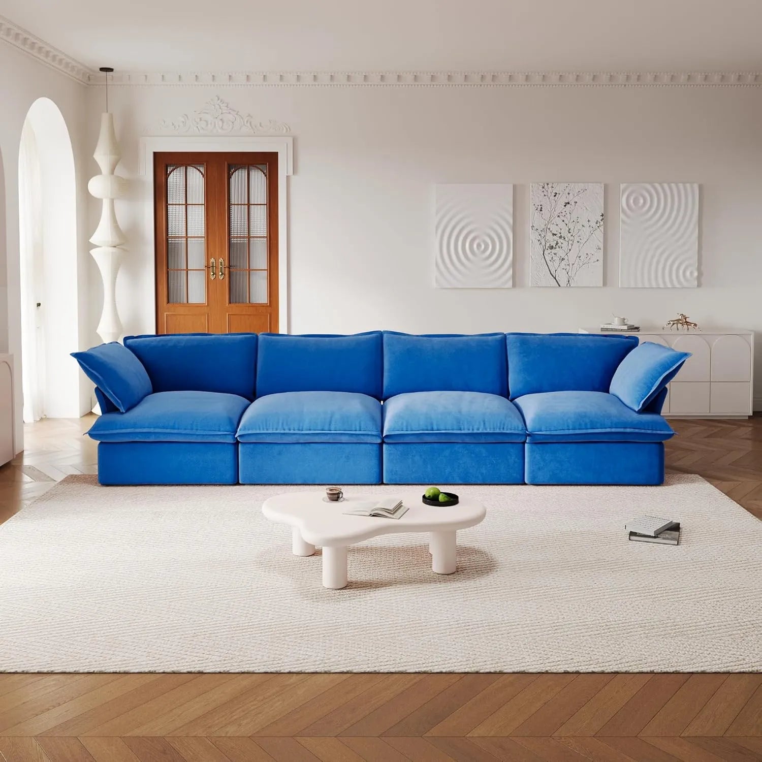 Premium Velvet Cloud Sectional Couches | 4-Piece Velvet Blue A Clean Simple Look Couch Sectionals 4-seaters