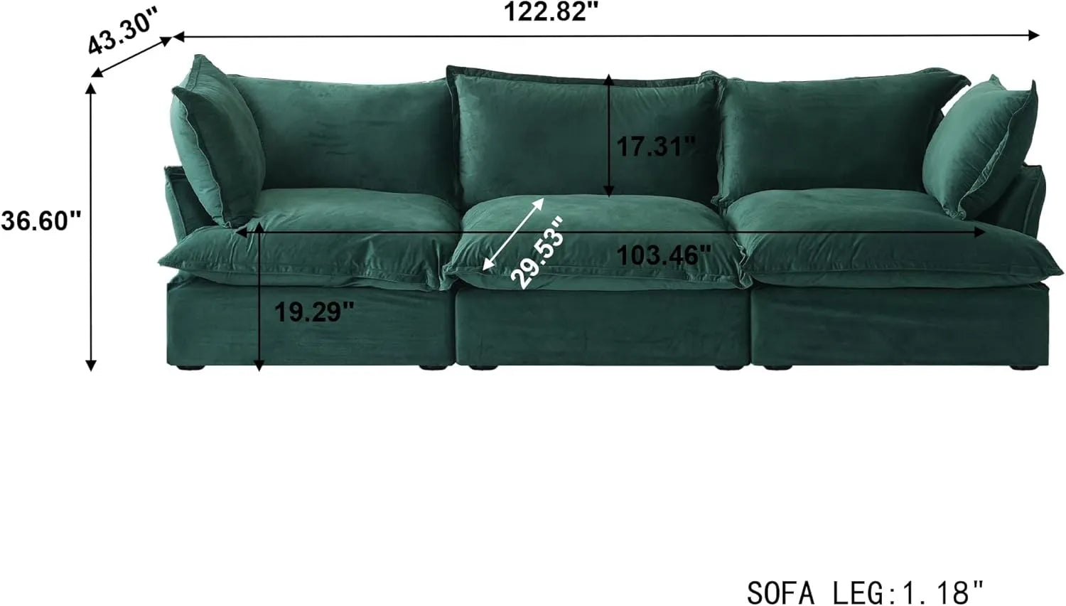 Premium Velvet Cloud Sectional Couches | 3-Piece Velvet Green Smart Hidden Storage Couch Sectionals 3-seaters