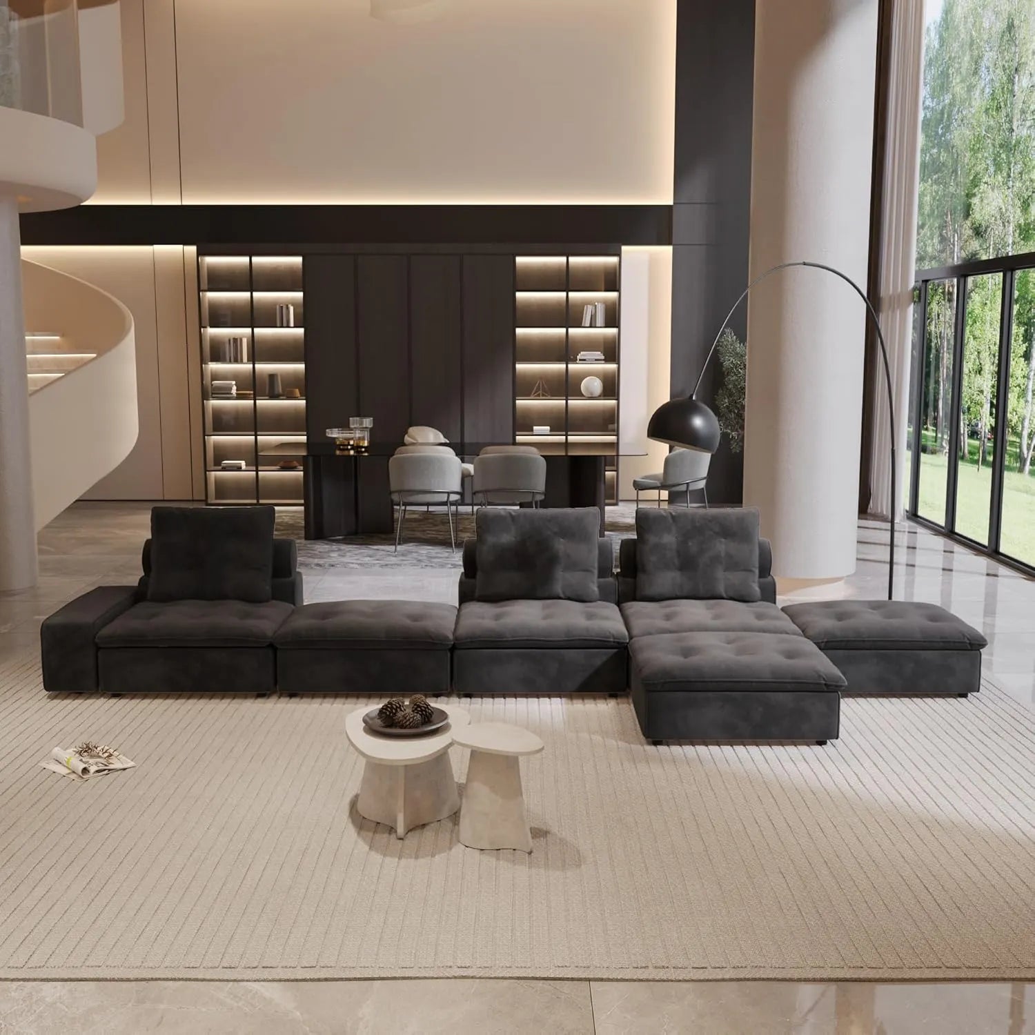 Premium Adjustable Cloud Sectional Couches | 6-Piece Velvet Grey Creative Curved Corner Sofa Sets 3-seaters with 3-Ottomans
