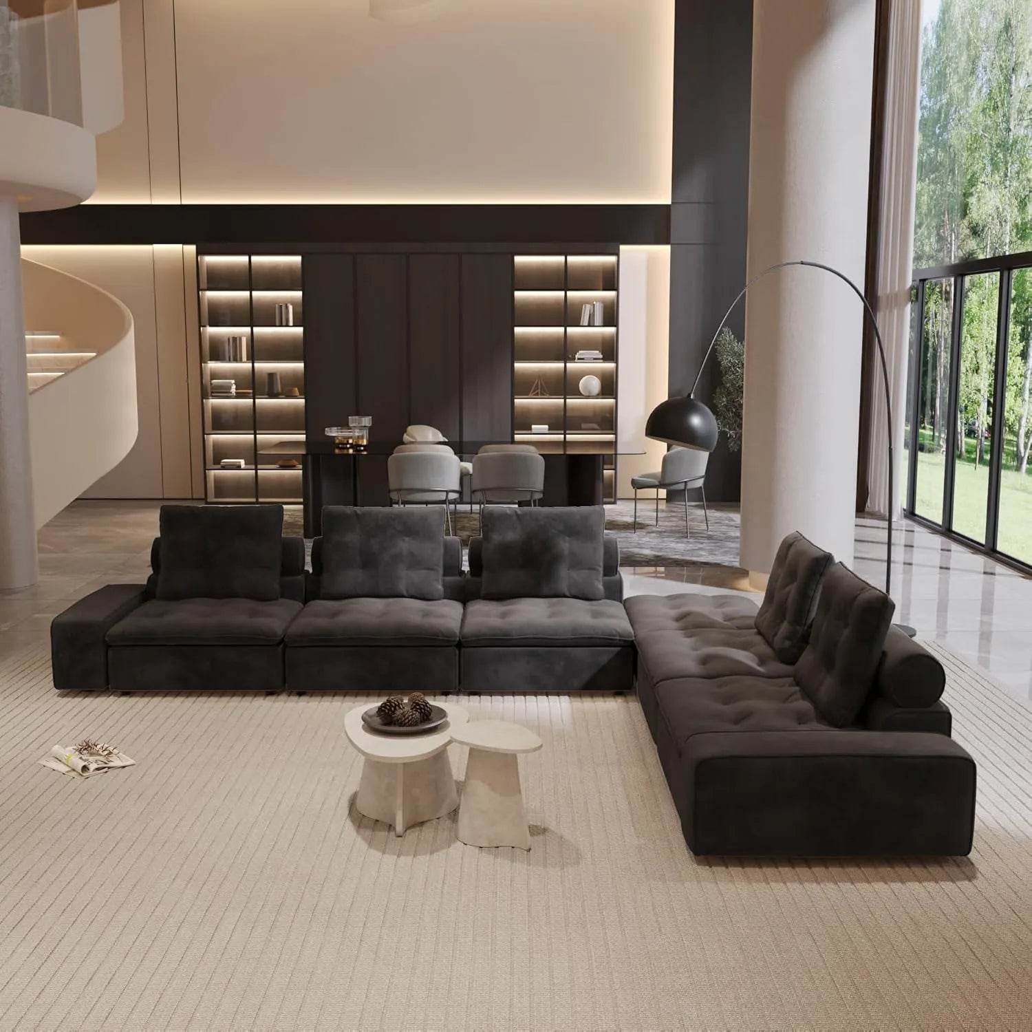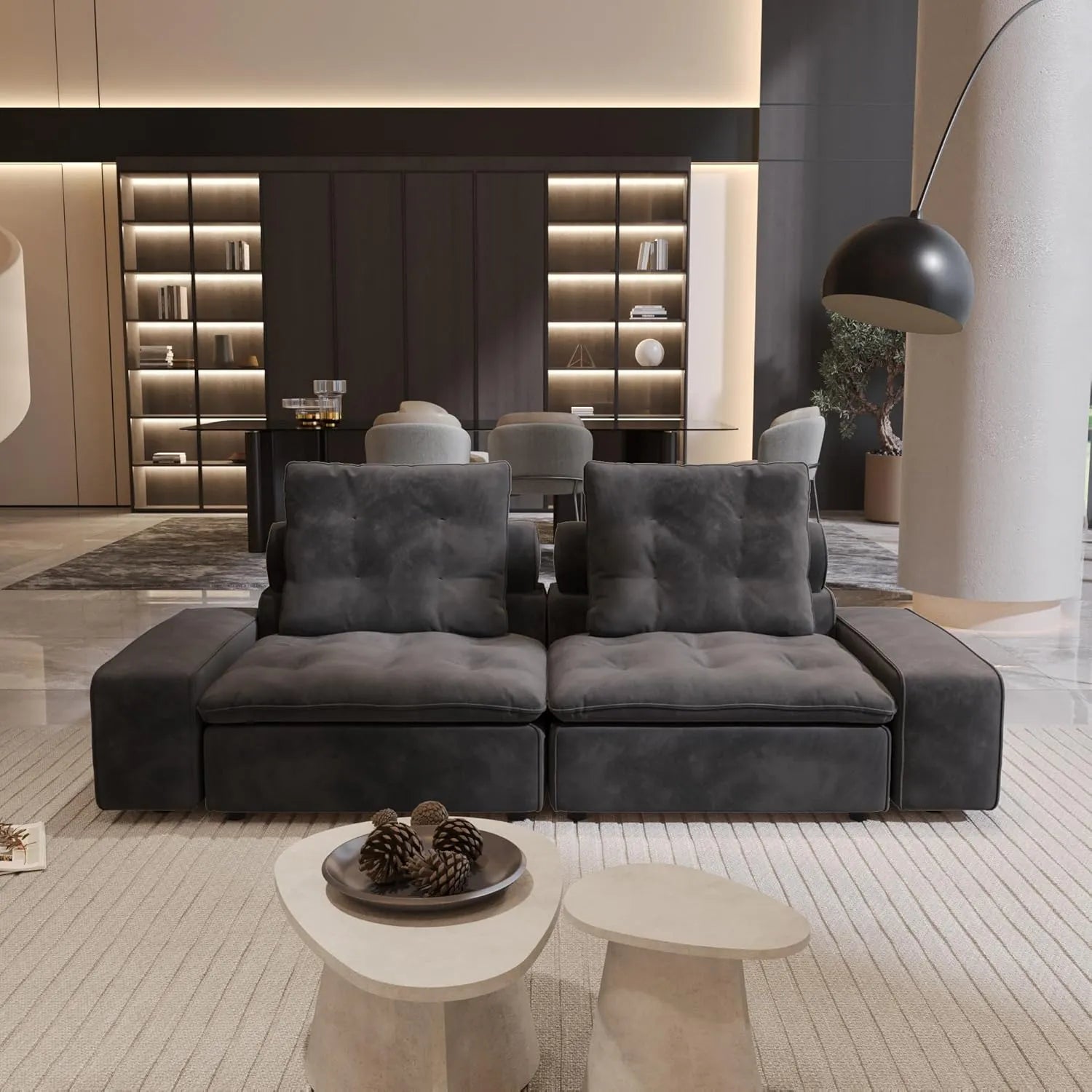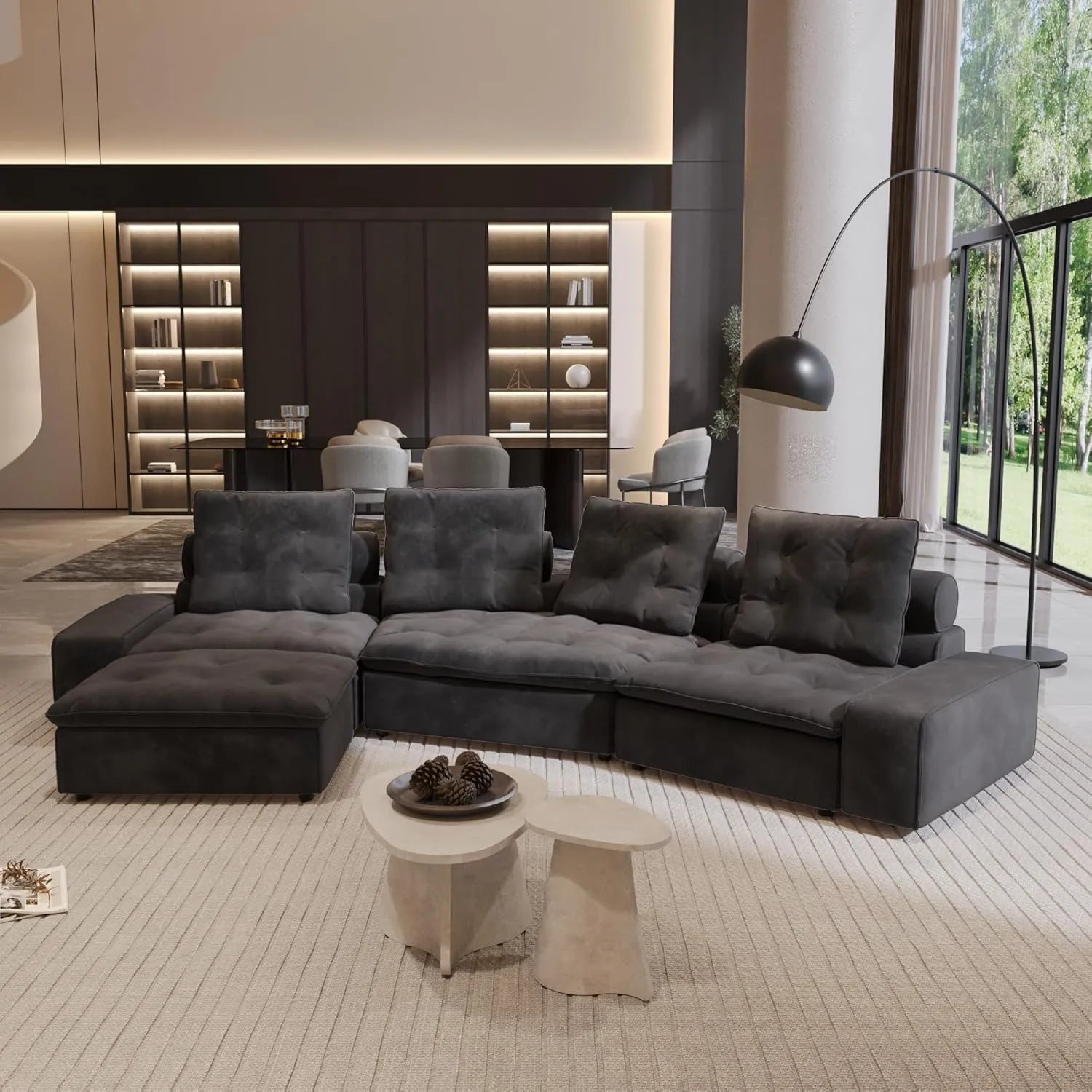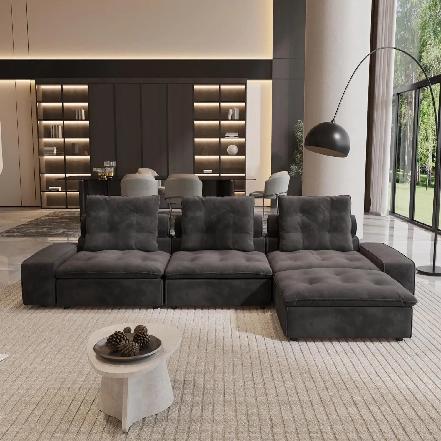 The Premium Adjustable Cloud Sectional Couch elevates your comfort with its generous seating and intelligent modularity, making it an ideal choice for larger living areas. A distinctive curved corner piece even allows you to design a uniquely rounded sectional.